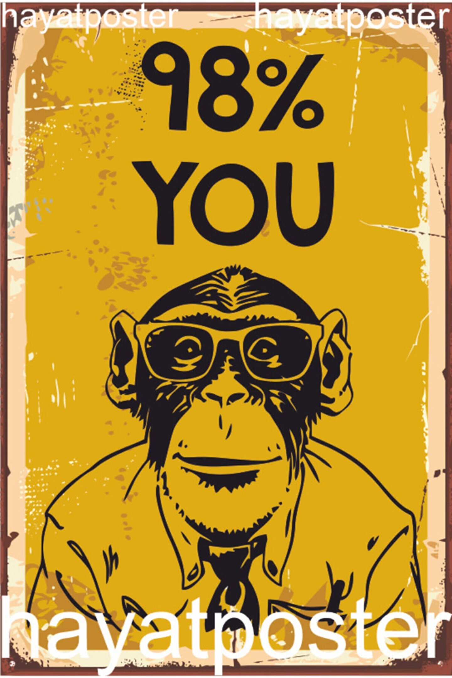 Hayat Poster Evrim %98 Sen Şempanze Retro Vintage Ahşap Poster