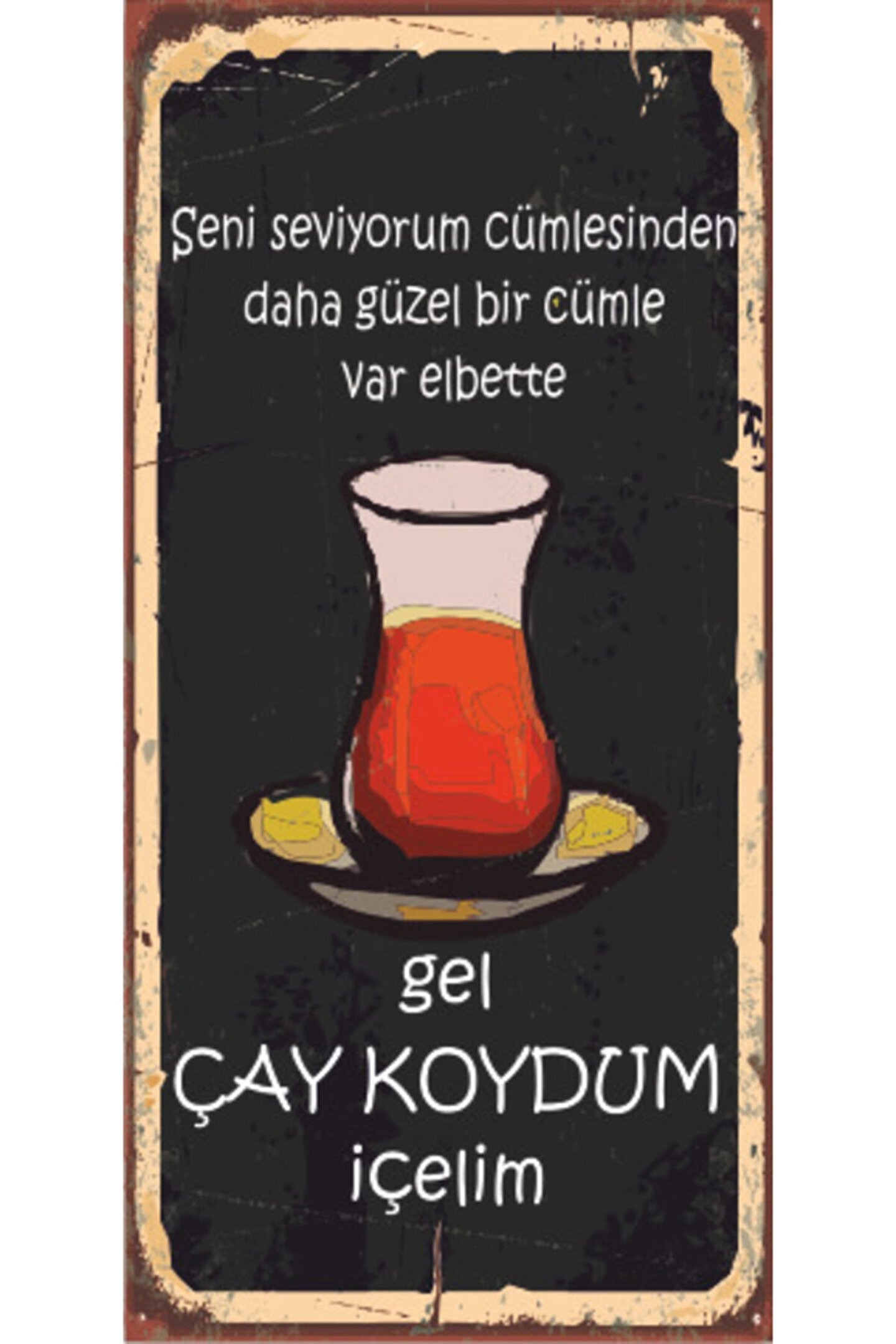 Hayat Poster Gel Çay Koydum Içelim (10 Cm X 20 Cm) Mini Retro Ahşap Poster