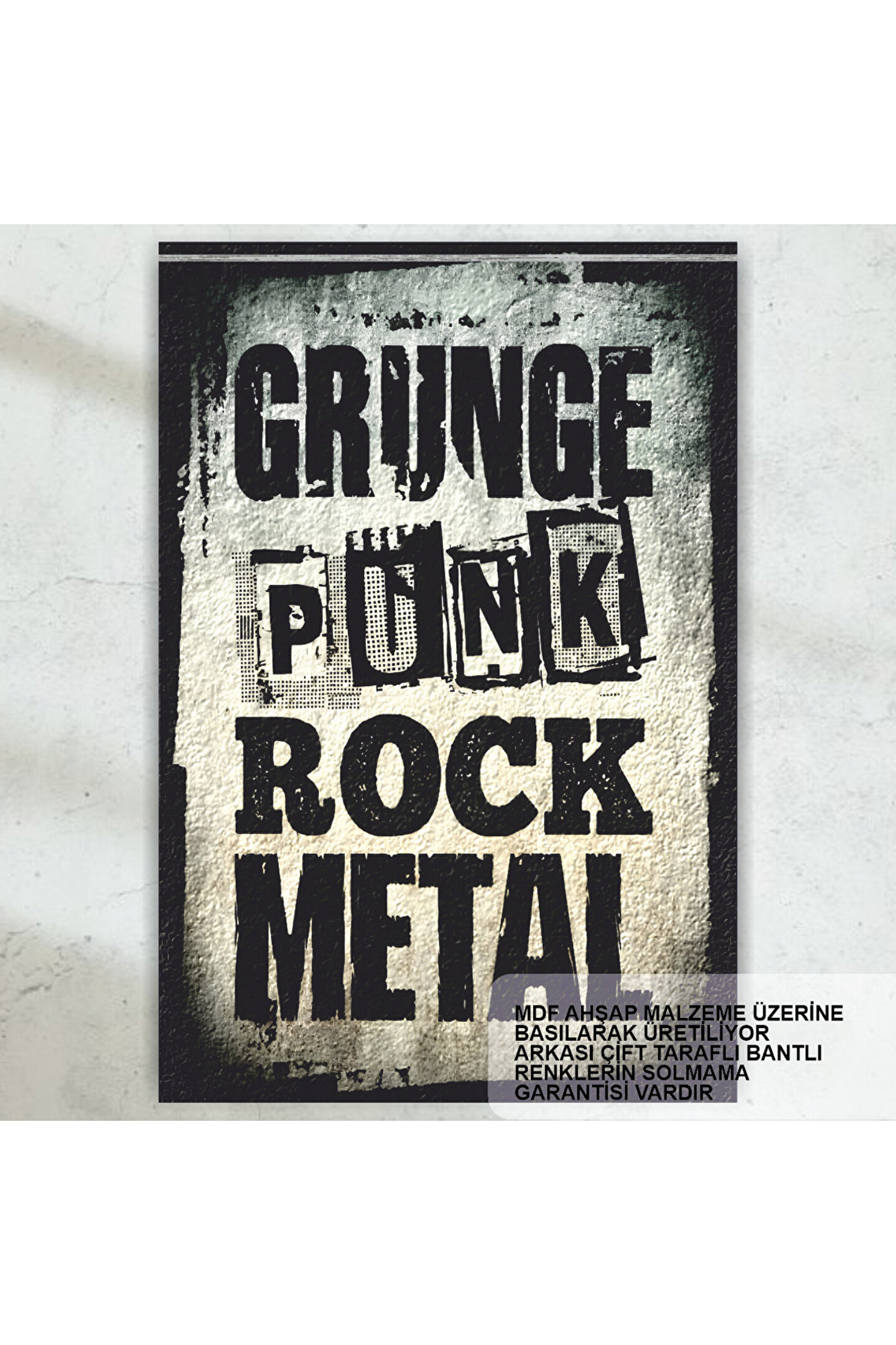 - Grunge punk rock metal müzik temalı, retro tasarım anlayışını yansıtan özgün bir dekoratif tablo.; - Yüksek kaliteli MDF malzemeden üretilmiş olup, dayanıklılığı ve uzun ömürlü kullanımı garanti eder.; - Tek parça halinde sunulan bu poster, kolay montaj avantajı sağlar ve duvarlarınıza şık bir dokunuş katar.; - Çerçevesiz tasarımı ile modern ve minimalist estetiği benimseyenlerin tercihi olan bu ürün, mekanınızda dikkat çekici bir atmosfer oluşturur.; - Üretimi Türkiye'de gerçekleştirilmiş olup yerel sanatçıların yeteneğini ve emeğini evinizde sergilemenizi sağlar.