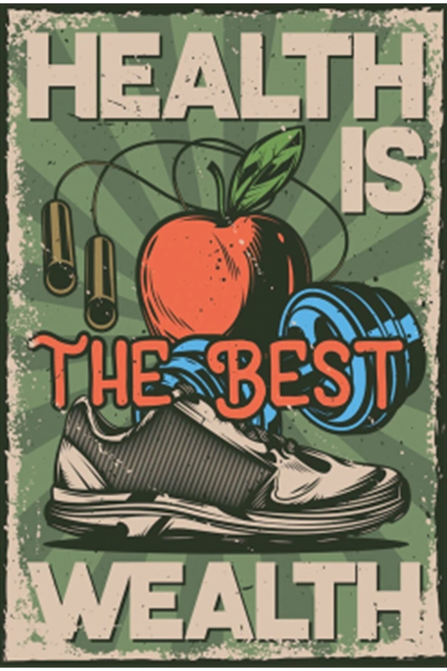 Hayat Poster Health Is The Best Wealth Retro Ahşap Poster