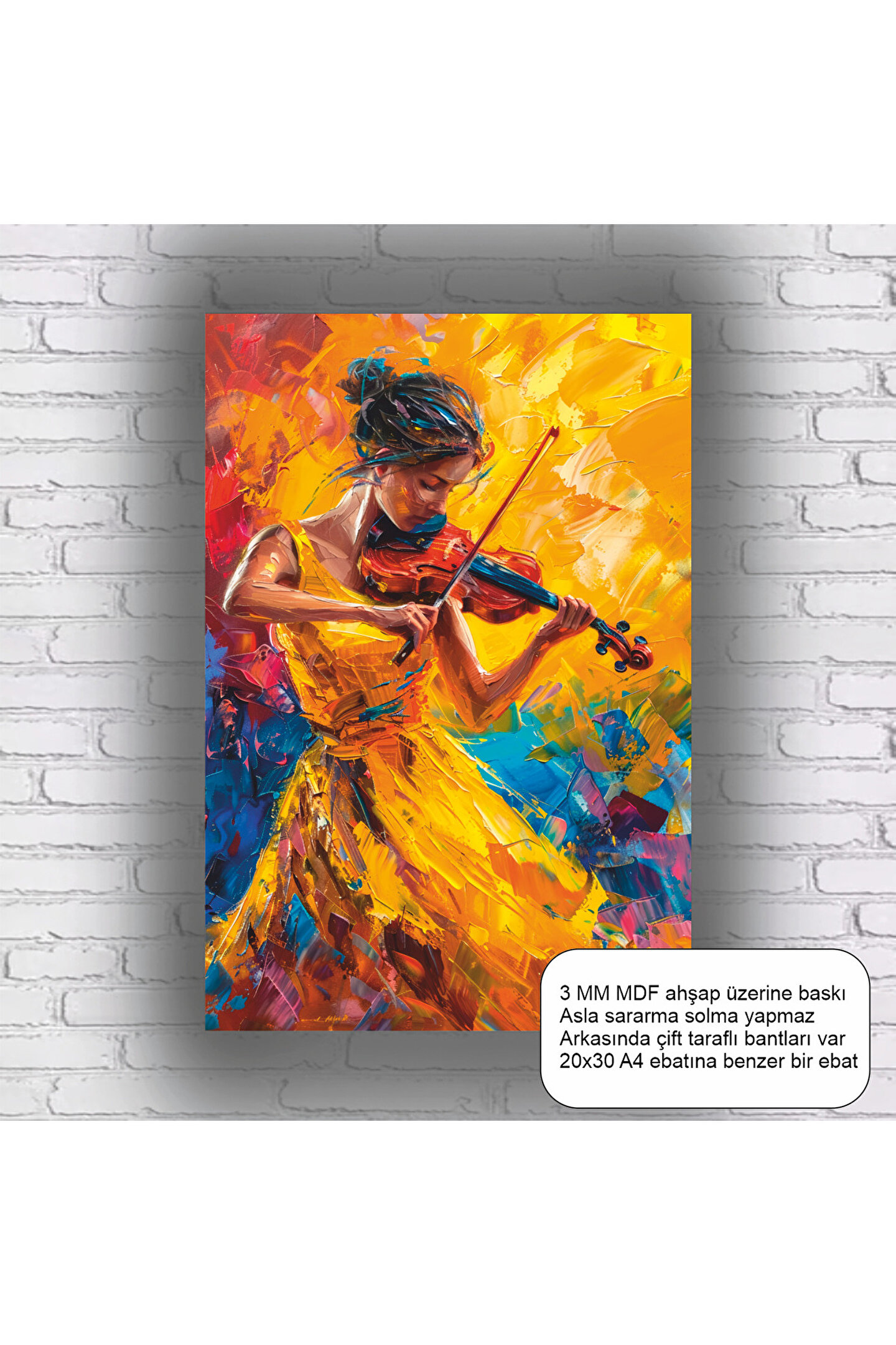- Estetik ve sanatsal tasarımıyla dikkat çeken, keman çalan sarılı kadın figürünü yansıtan mdf tablo.; - Cesur sanat temasıyla evinizin dekorasyonuna modern bir dokunuş ekler.; - Türkiye menşeli olup, yerel üretim kalitesini yansıtır.; - Çerçevesiz tasarımı sayesinde farklı çerçeve seçenekleriyle kolayca uyum sağlar ve kişisel zevkinize göre özelleştirilebilir.; - Dayanıklı MDF materyali ile uzun ömürlü kullanım sunar ve kolay temizlenebilir özelliğiyle pratik bir kullanım sağlar.;