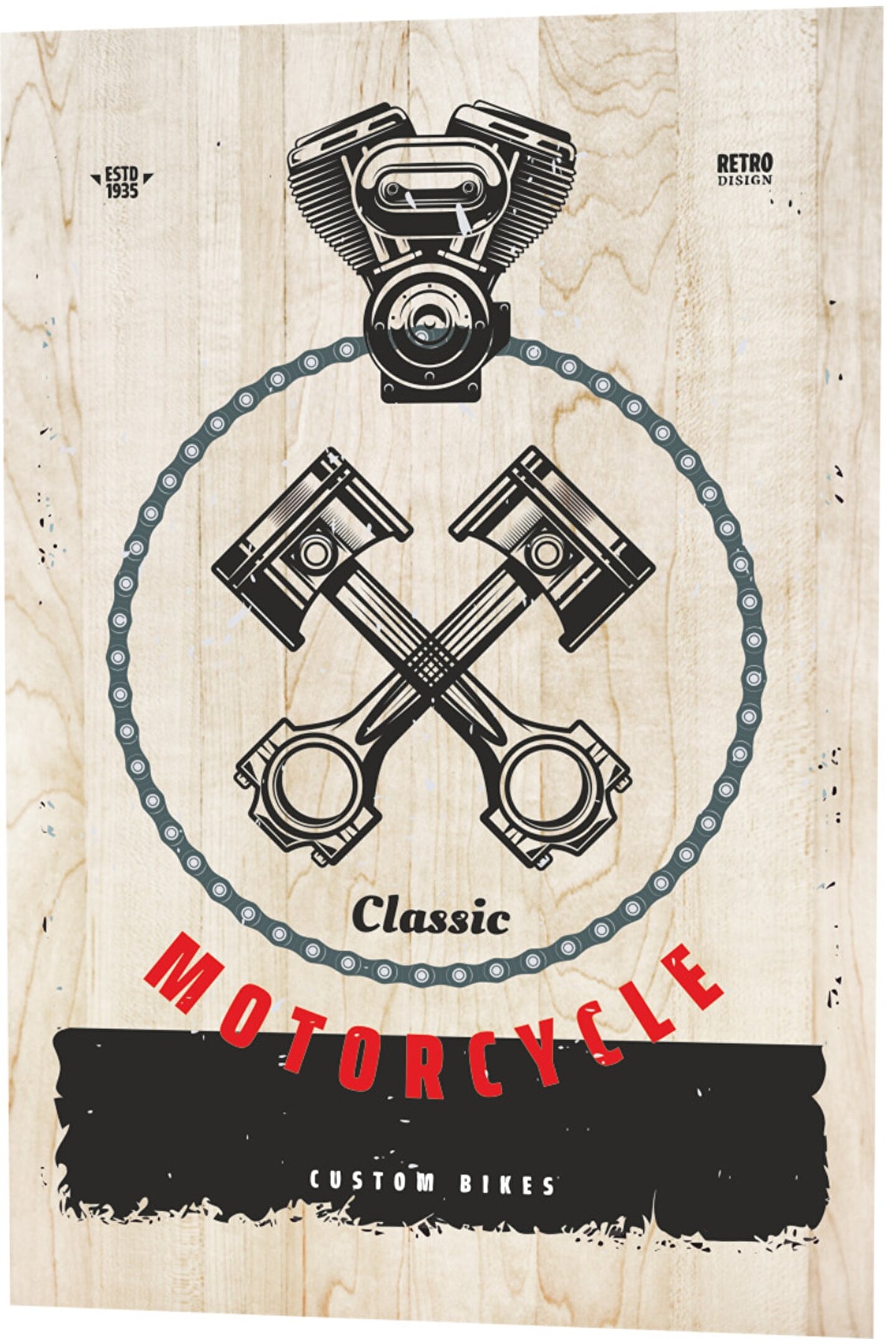 Hayat Poster Klasik Motor Ahşap Desenli Retro Vintage Ahşap Poster