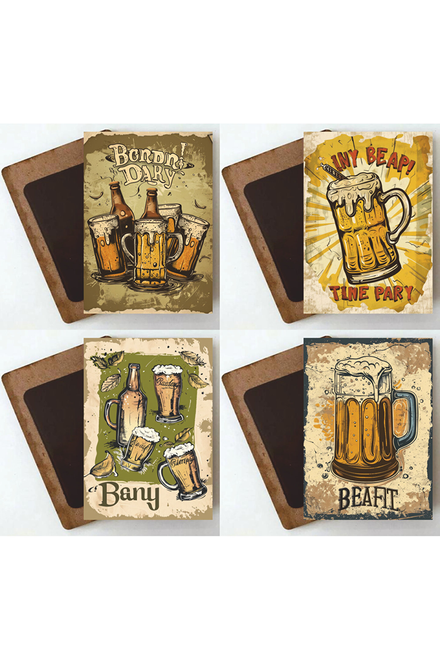 Klasik tasarımıyla dikkat çeken bu 4'lü ahşap magnet seti, bira severlerin mutfaklarınıza şıklık katıyor; Vintage çizimlerle süslenmiş köpüklü bira kadehi, bira partilerinizde veya ev dekorasyonunuzda nostaljik bir hava yaratıyor; Buzdolabınızın kapısını açtığınızda bu magnetlerin eşsiz görüntüsüyle karşılaşıyorsunuz, her anınıza keyif katıyor; Ahşap malzemesiyle doğal bir dokunuş sunan bu magnetler, mutfak dekorasyonunuza otantik bir hava kazandırıyor;