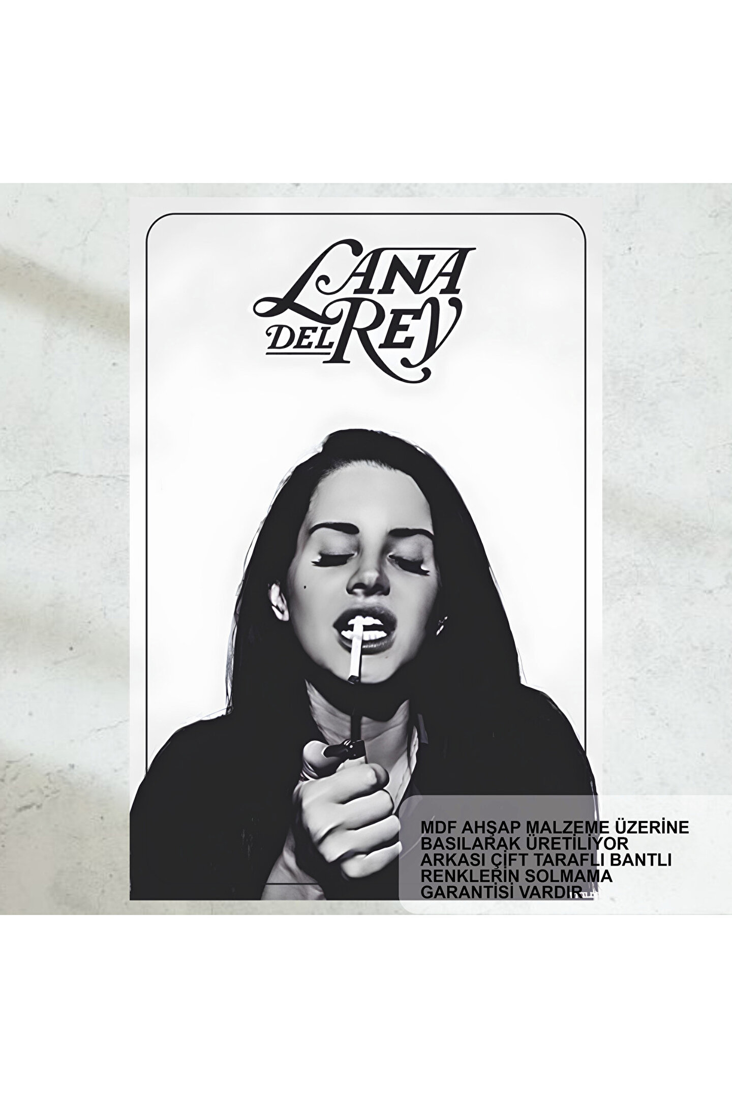 - Lana Del Rey'in klasik şarkılarından ilham alan bu retro ahşap poster, evinizin duvarlarını süsleyecek.; - Tek parça halinde gelen bu eser, kolayca asılabilir ve mekanınıza hemen uyum sağlar.; - Türkiye'den tedarik edilen malzemelerle üretilmiş olup, yerel kaynaklı bir sanat eseri sunar.; - Retro temayı ve stil ile geçmişin özünü yansıtan bu tasarım, nostalji severler için idealdir.; - Çerçevesiz tasarımı sayesinde farklı boyutlardaki duvarlara rahatlıkla uyarlanabilir ve kişisel zevkinize göre düzenlenebilir.; - Dayanıklı MDF materyali ile uzun ömürlü kullanım vaat ederken, estetik görünümünden ödün vermez.