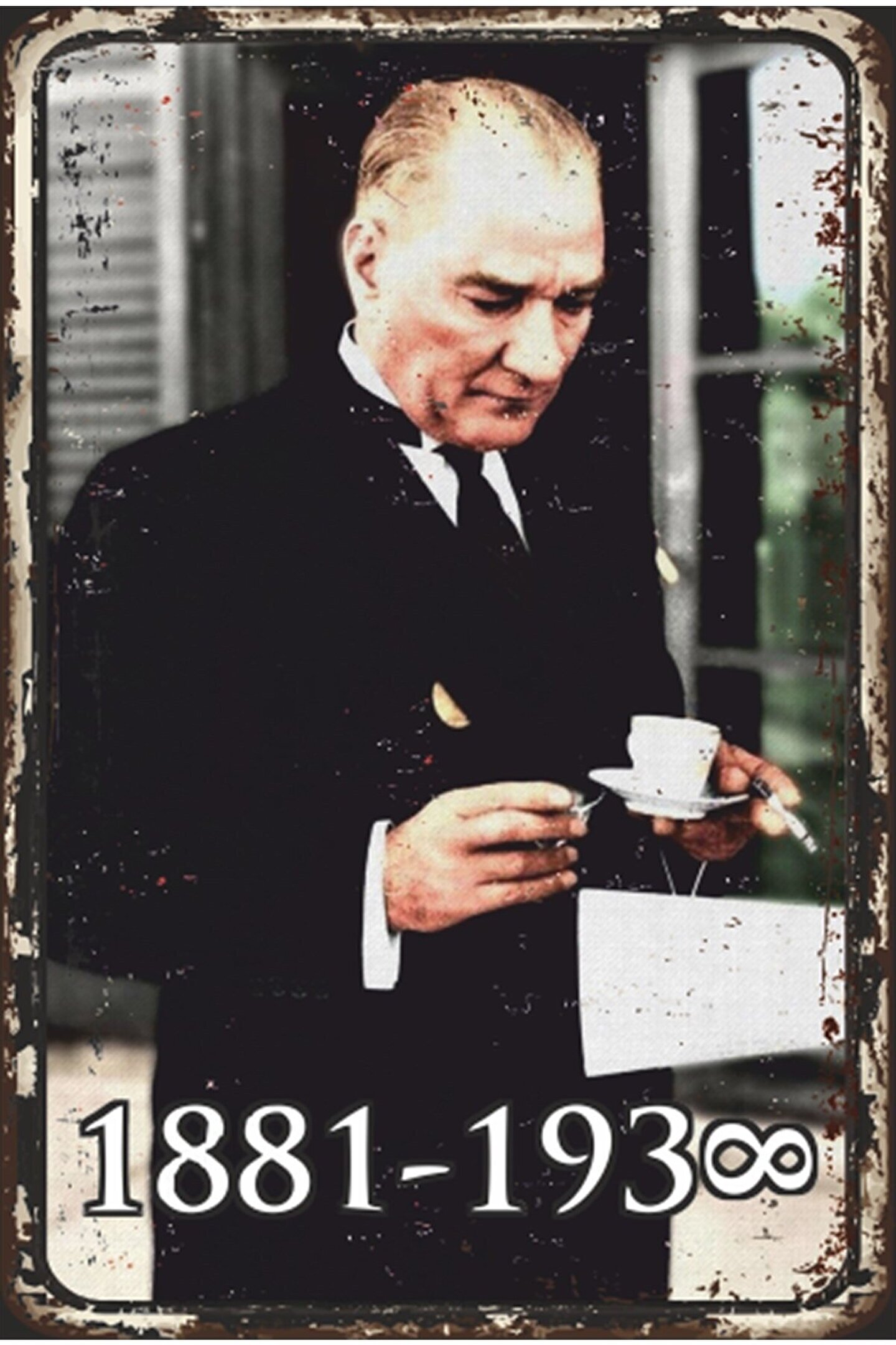 Hayat Poster Mustafa Kemal Atatürk Kahve Içerken Retro Ahşap Poster