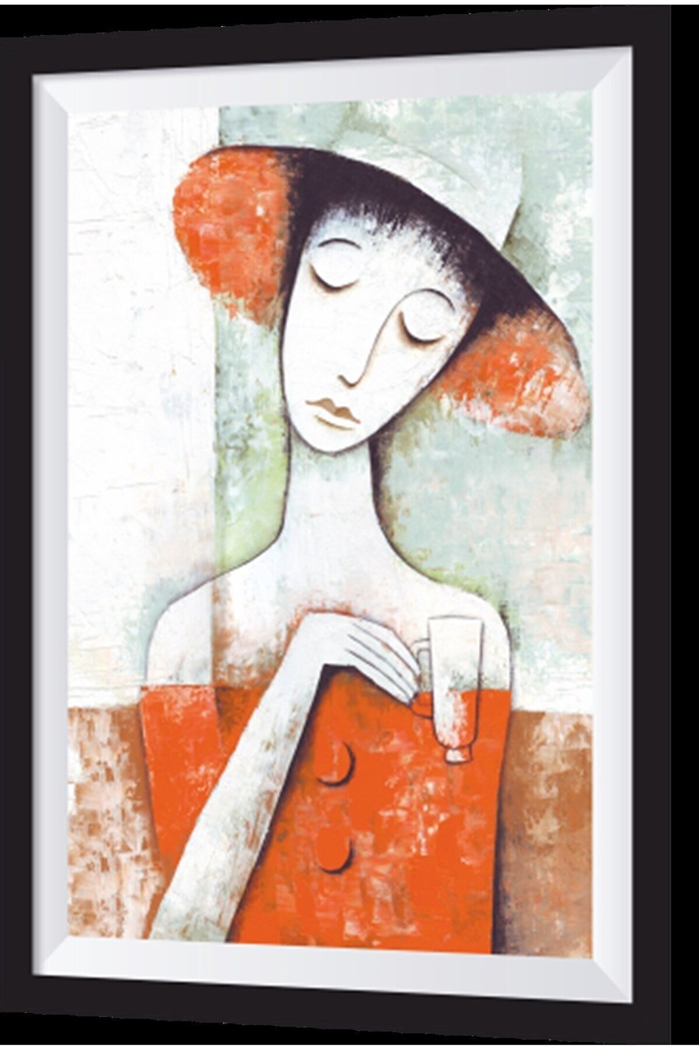 Hayat Poster Pembe Şapkalı Kadın Sanatsal Çerçeve Görünümlü Ahşap Tablo