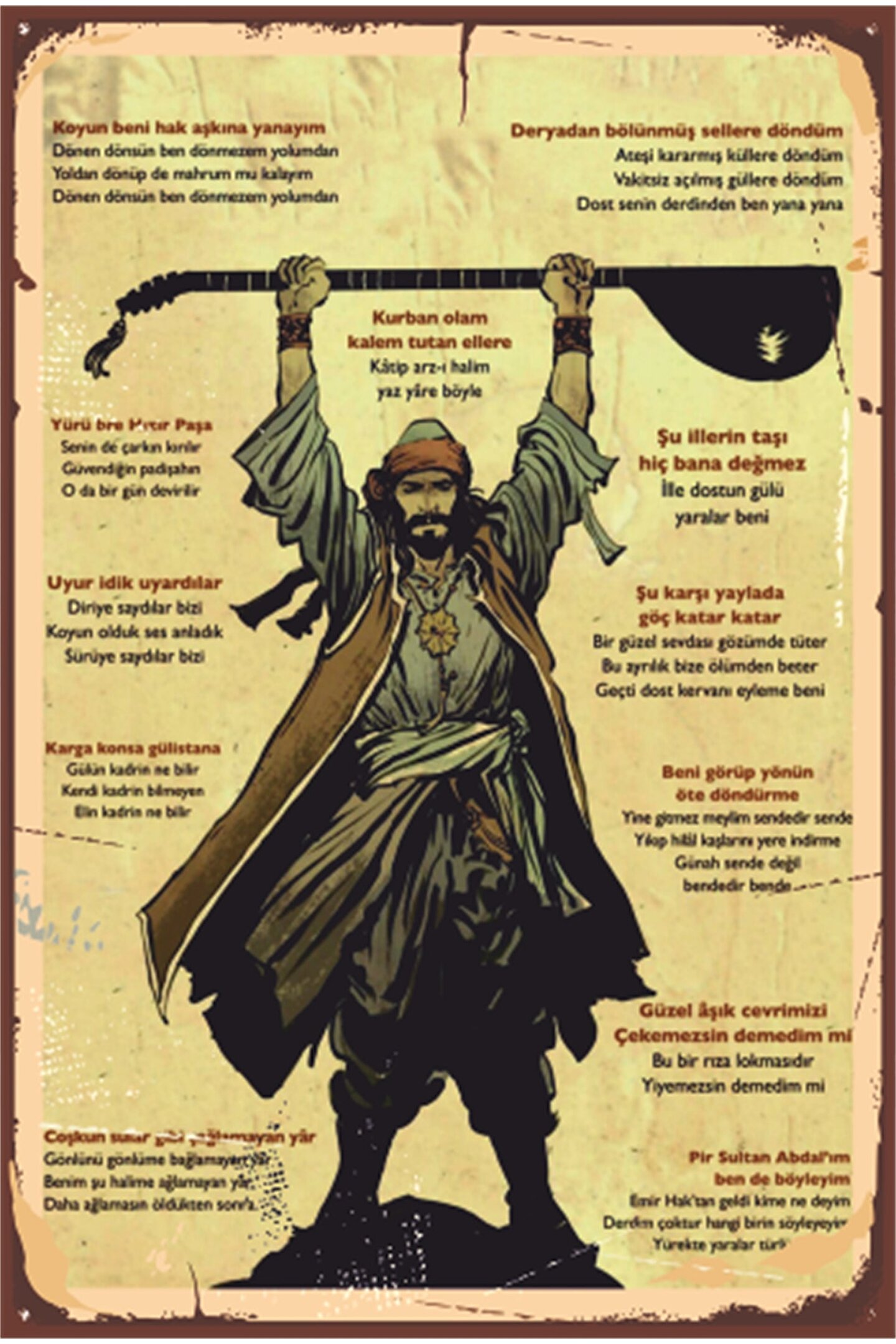 Hayat Poster Pir Sultan Abdal Sözleri Retro Ahşap Poster