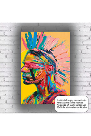 - Punkçu rock ve metal müzik temalı tasarımıyla dikkat çeken bu tablo, müzikseverlerin duvarlarını süslemek için ideal bir seçimdir.; - İnsan figürlerinin özgün yorumuyla, sanatsal bir dokunuş katmak isteyenler için mükemmel bir dekorasyon seçeneği sunar.; - Türkiye menşeli olmasıyla yerel üretim desteklenir ve kaliteli işçilikle üretilmiştir.; - Çerçevesiz tasarımı sayesinde, mevcut dekorasyonunuza kolayca uyum sağlar ve esnek bir kullanım imkanı tanır.; - MDF materyali sayesinde dayanıklılık ve uzun ömürlü kullanım vaat eder; yıllarca ilk günkü canlılığını korur.;
