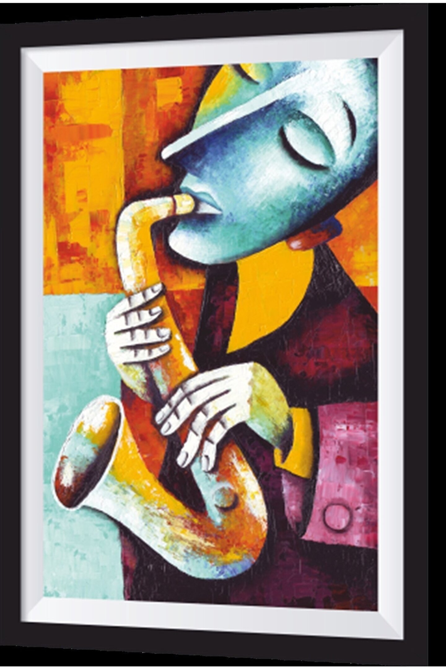 Hayat Poster Saksafon Çalan Müzisyen Sanatsal Çerçeve Görünümlü Ahşap Tablo