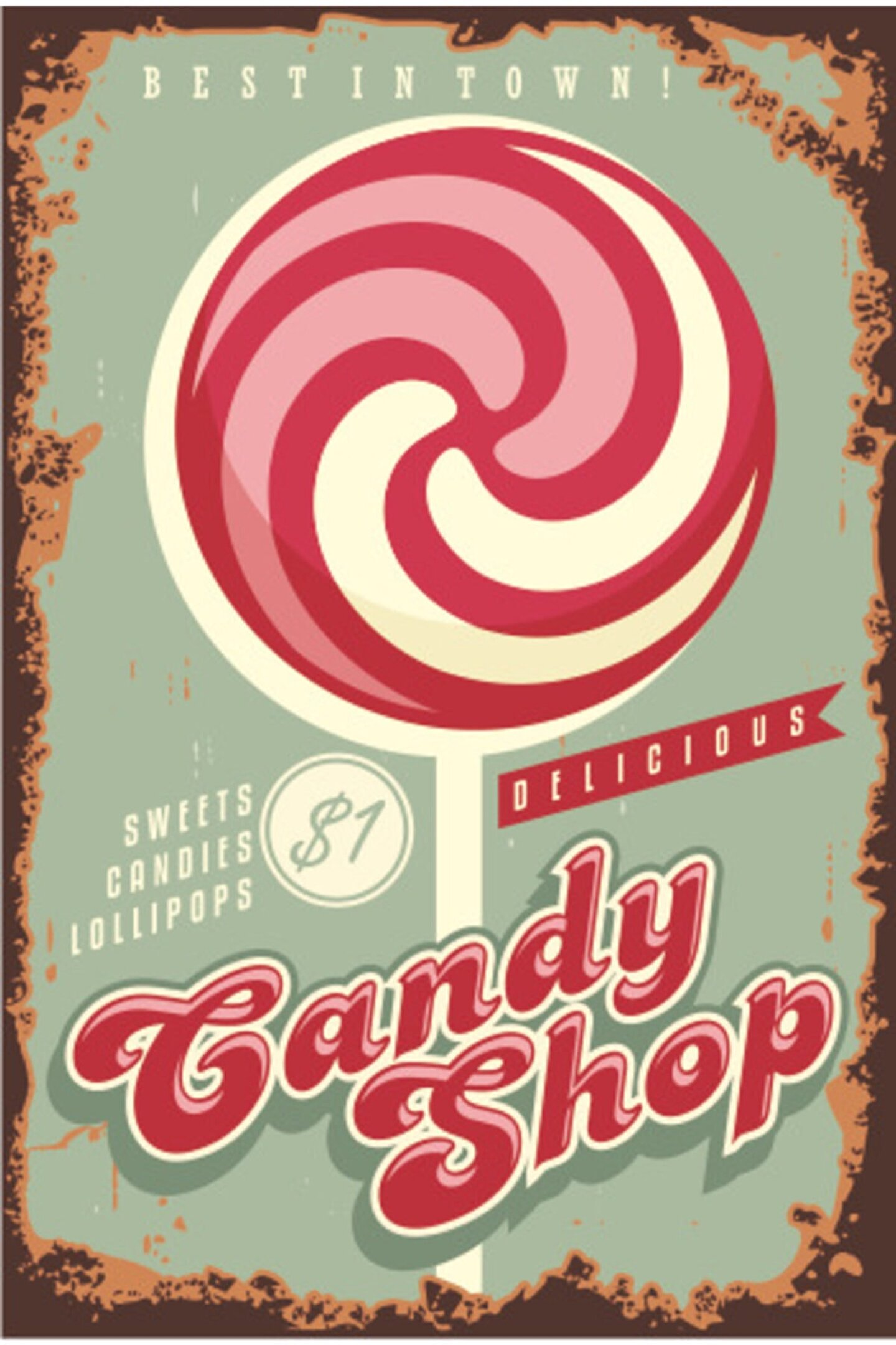Hayat Poster Şekerci Mutfak Posterleri- 5 Retro Ahşap Poster