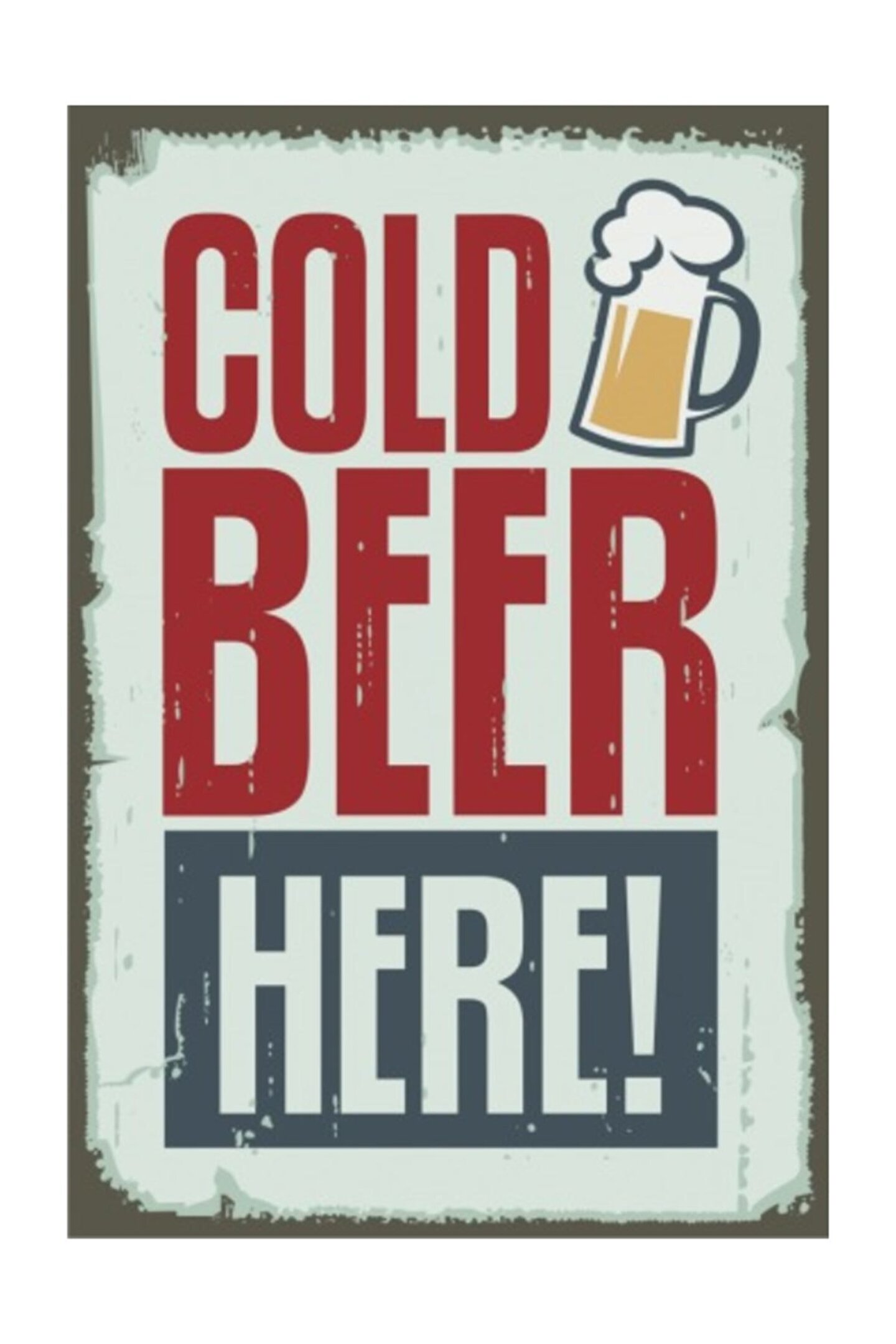 Hayat Poster Soğuk Bira Burada Retro Vintage Ahşap Poster