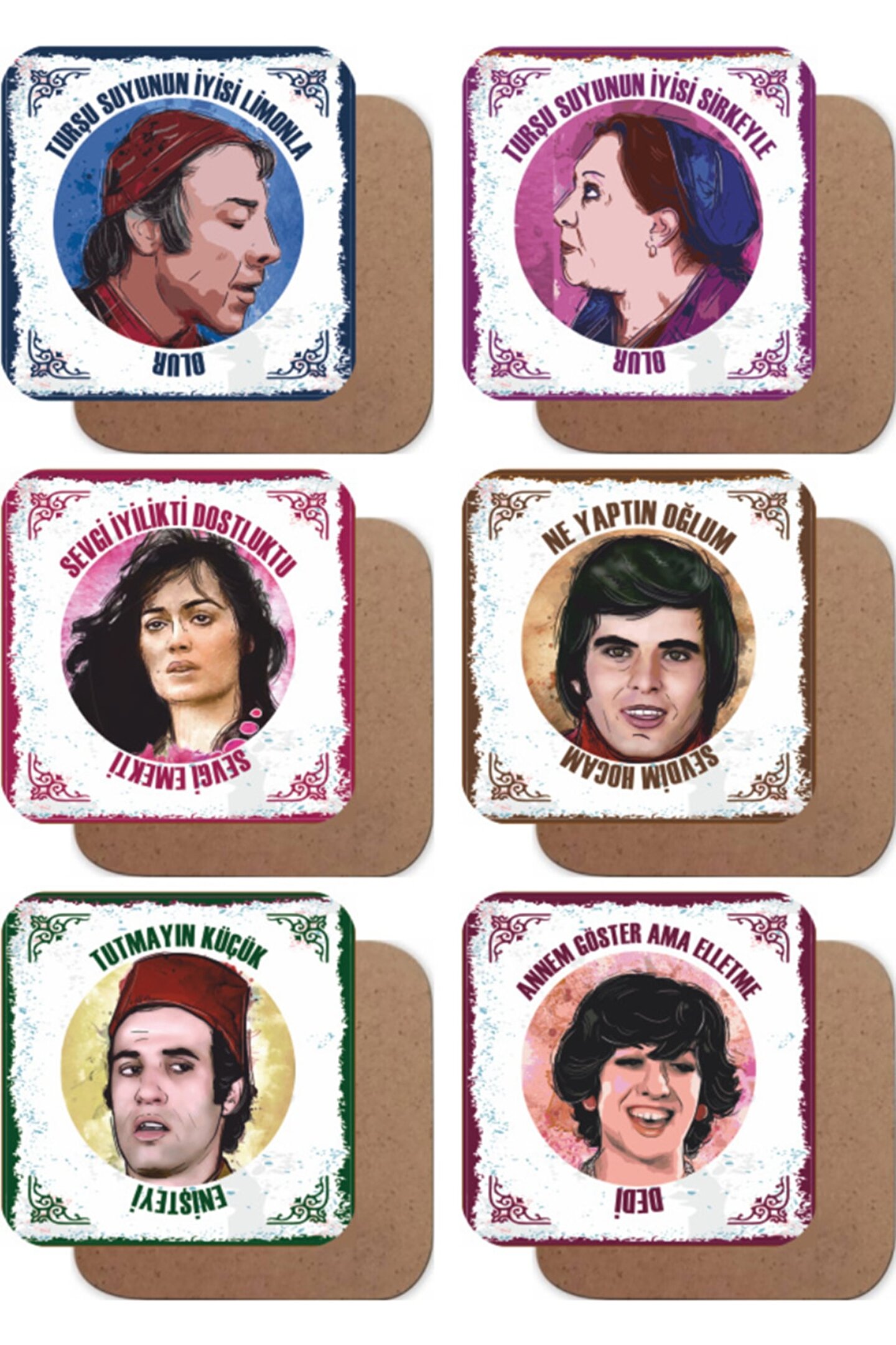 Yeşilçam Türk sinemasının unutulmaz repliklerini hatırlatan bu 6'lı retro bardak altlığı seti, sinema severlerin beğenisine sunuluyor; Doğal ahşap malzemesiyle hem dayanıklı hem de estetik bir görünüm sunan bu bardak altlıkları, mutfak dekorasyonunuza otantik bir dokunuş katıyor; Her bir bardak altlığı, Yeşilçam filmlerinden seçilmiş özel repliklerle süslenmiş olup, sofralarınıza nostaljik bir hava katıyor; Ahşap yapısı sayesinde uzun ömürlü kullanım vaat eden bu set, sık sık değiştirme ihtiyacını ortadan kaldırarak çevre dostu bir seçim oluşturuyor; Mutfakta veya salonunuzda rahatlıkla kullanabileceğiniz bu retro bardak altlıkları, hem işlevsel hem de dekoratif bir aksesuar olarak dikkat çekiyor;