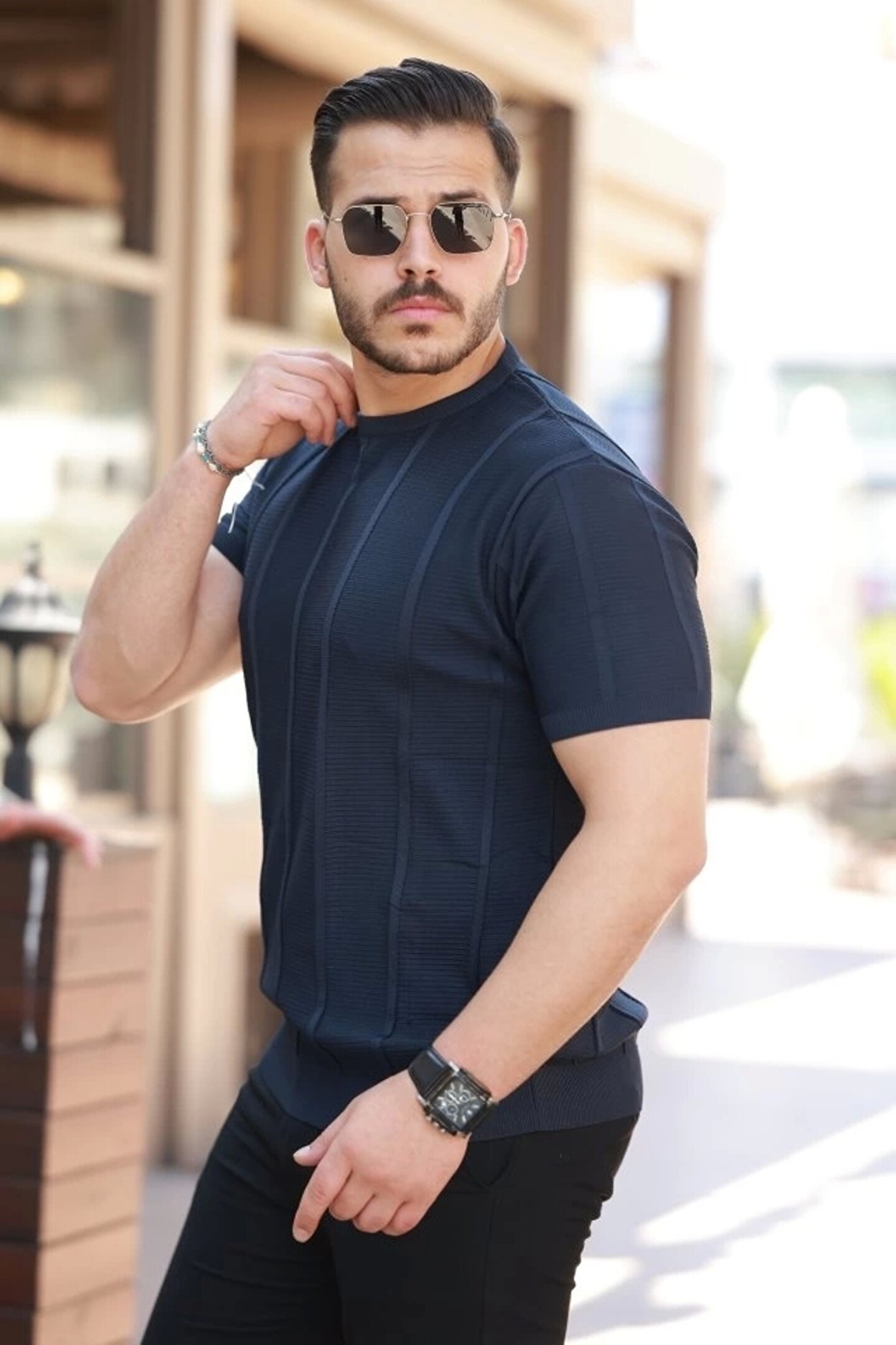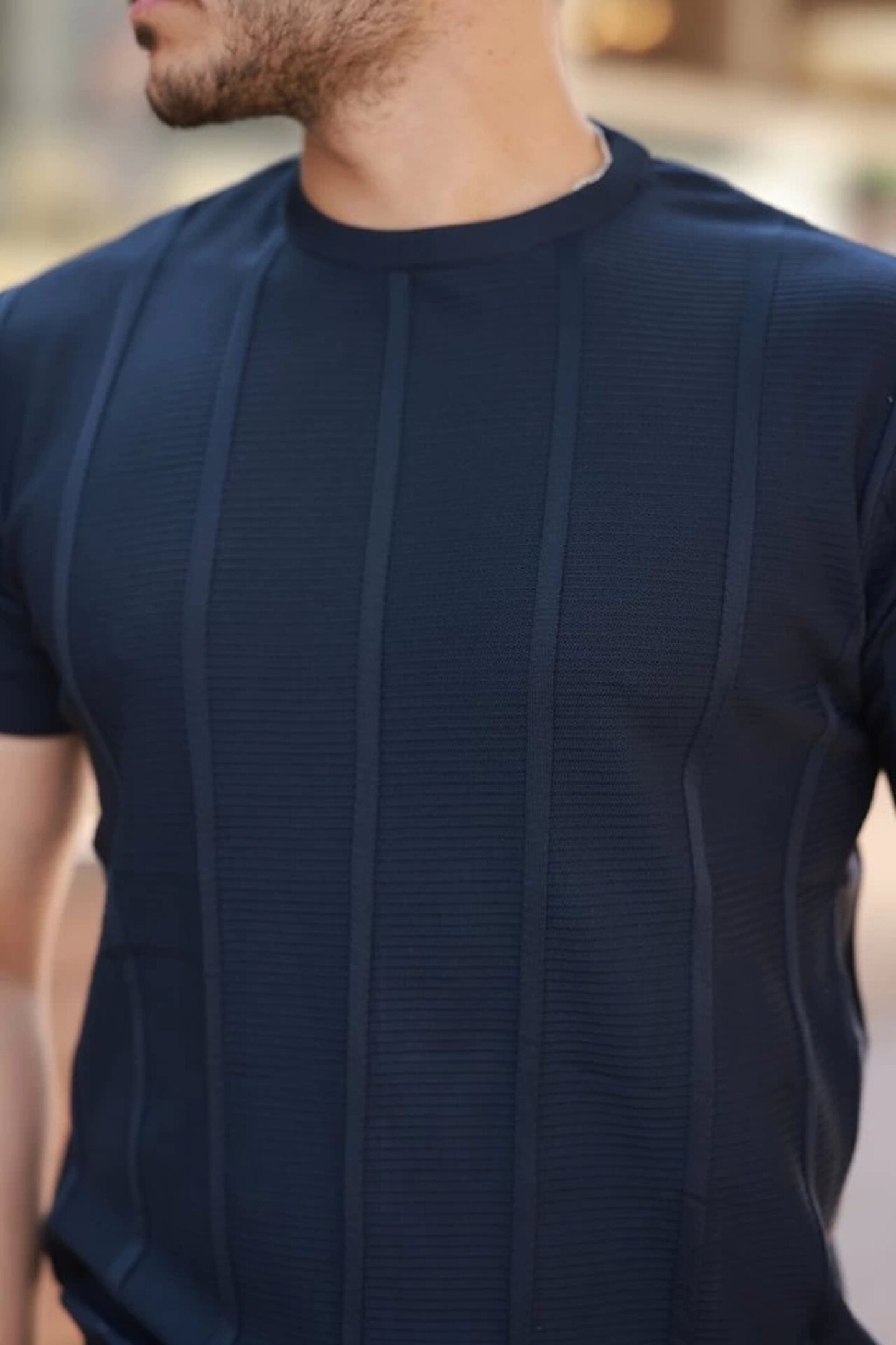 Kadın Desenli çizgi Kabartmalı Kısa Kollu Tişört