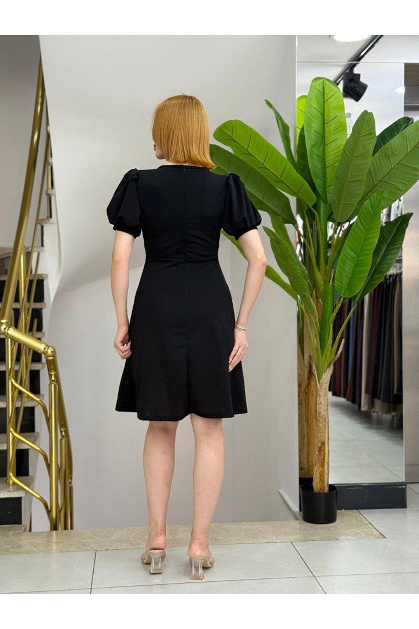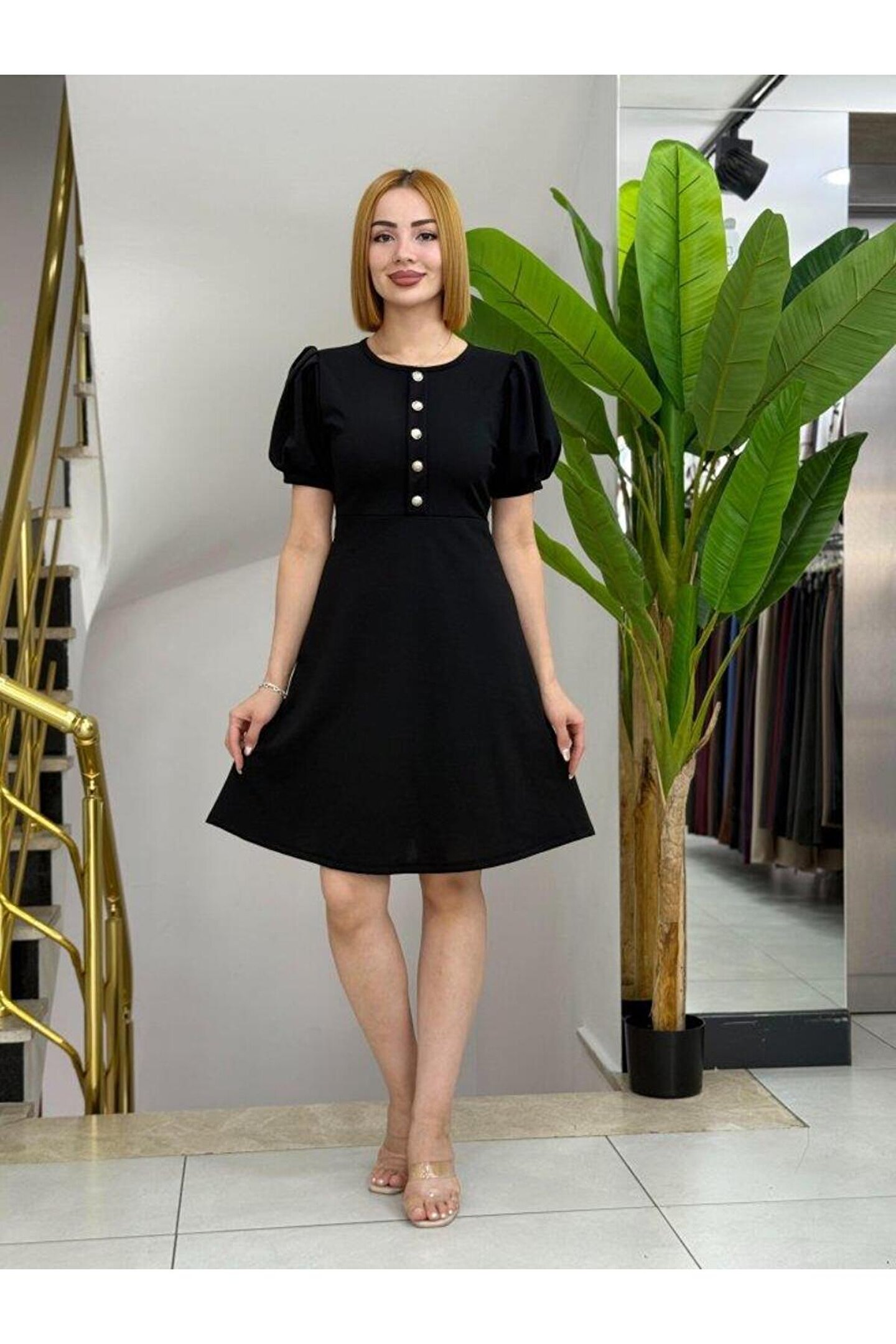 Kadın Kısa Kollu Bisiklet Yaka önden Düğmeli Ithal Krep Elbise