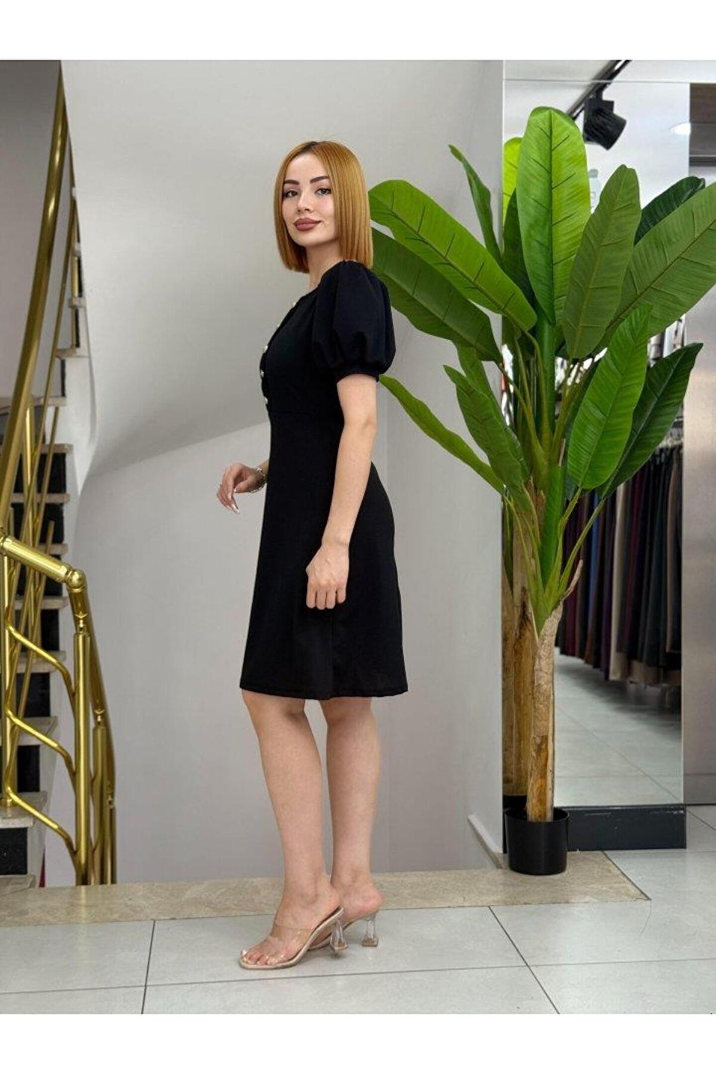 Kadın Kısa Kollu Bisiklet Yaka önden Düğmeli Ithal Krep Elbise