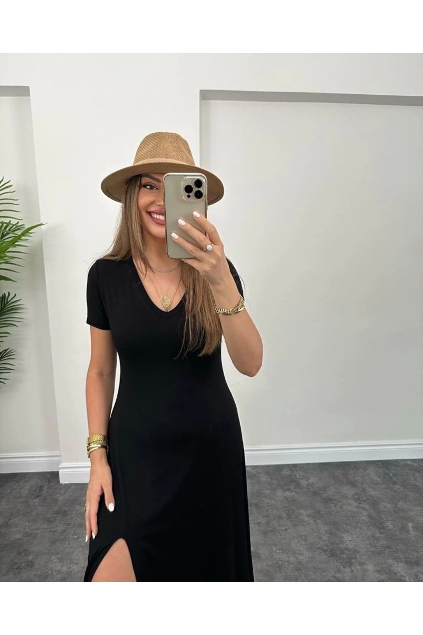 Kadın Kısa Kollu V Yaka Maxi Boy Elbise 124 Cm