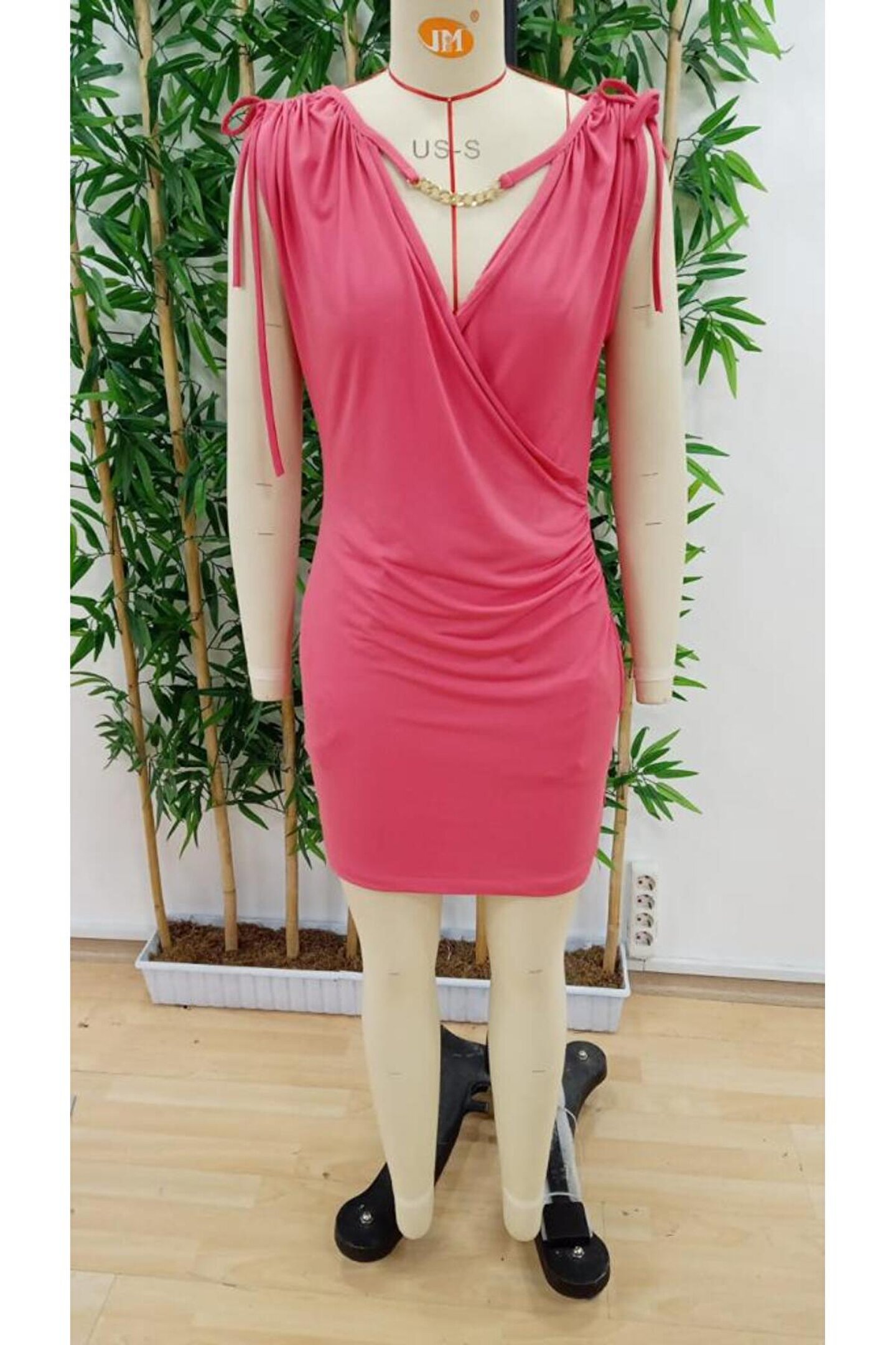 Kadın Kruvaze Yaka Büzgü Ve Aksesuar Detay Sandy Mini Elbise