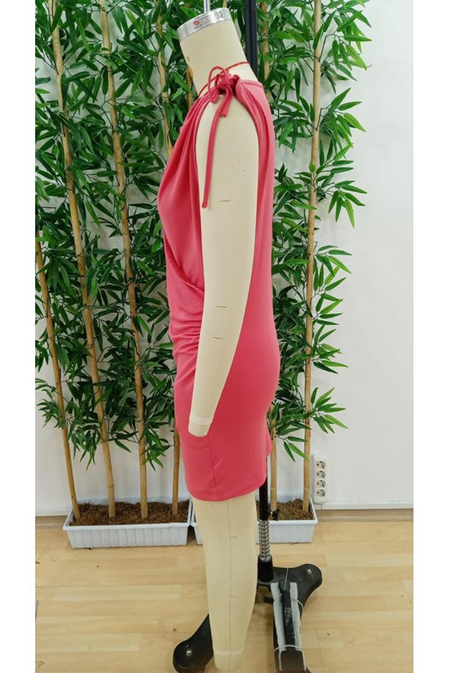 HAZEGO Kadın Kruvaze Yaka Büzgü Ve Aksesuar Detay Sandy Mini Elbise