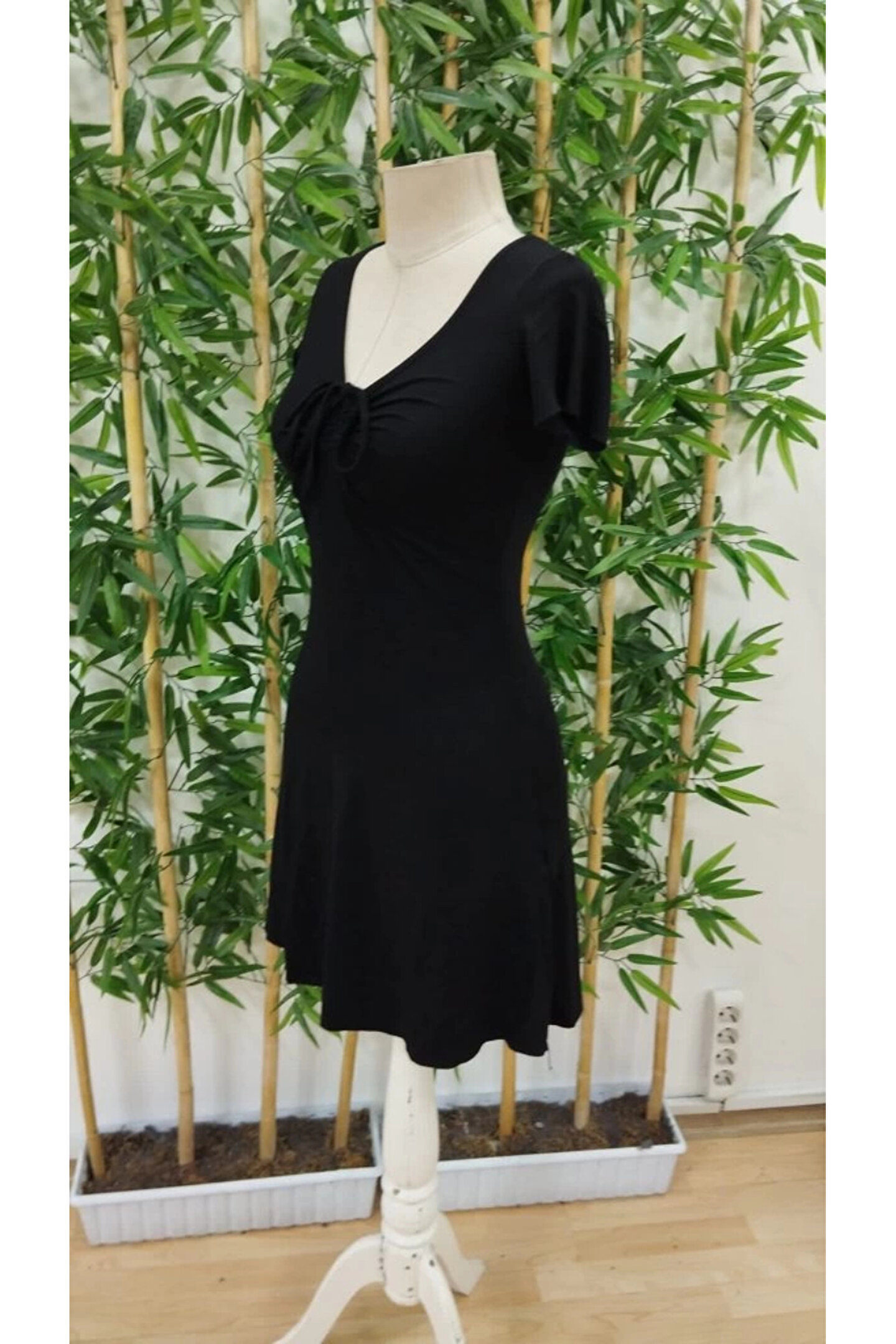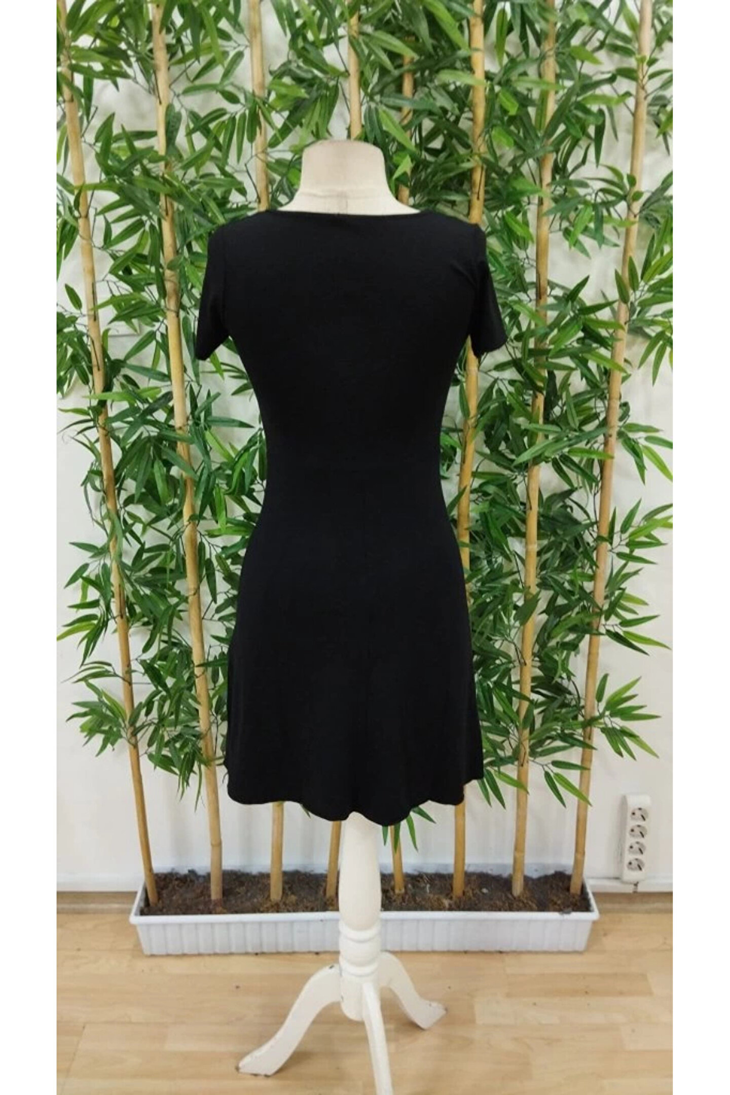 Kadın Kısa Kollu V Yakalı önden Düğmeli çift Renkli Viskon Elbise