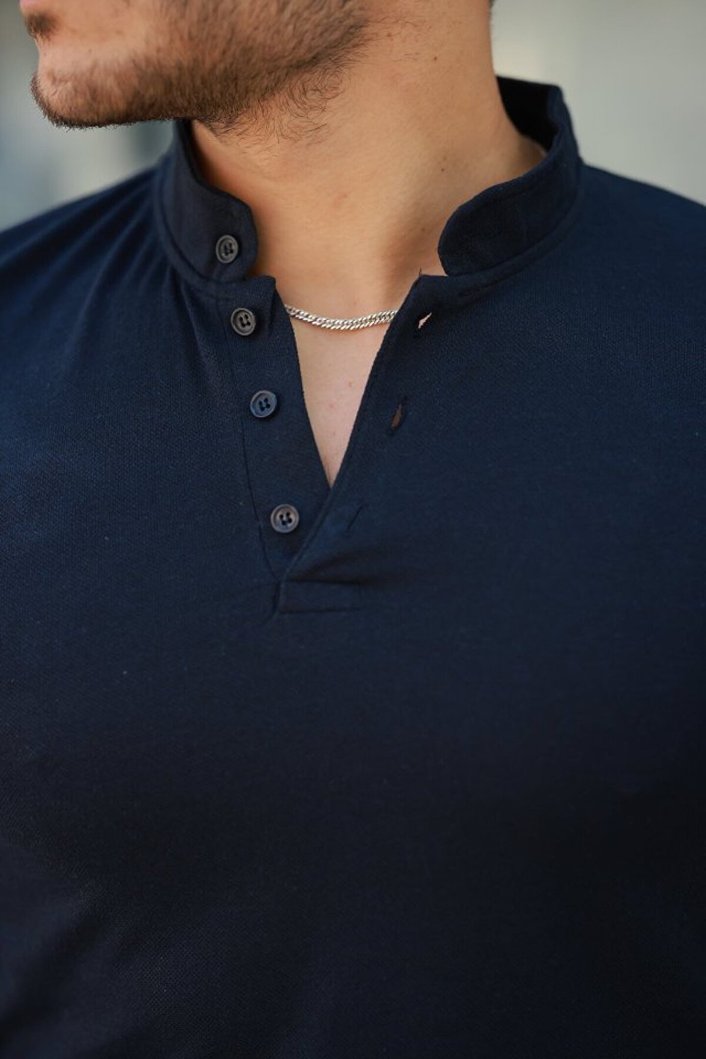 Erkek Hakim Yaka Dokuma Pamuklu Kumaş Kısa Kollu T-shirt