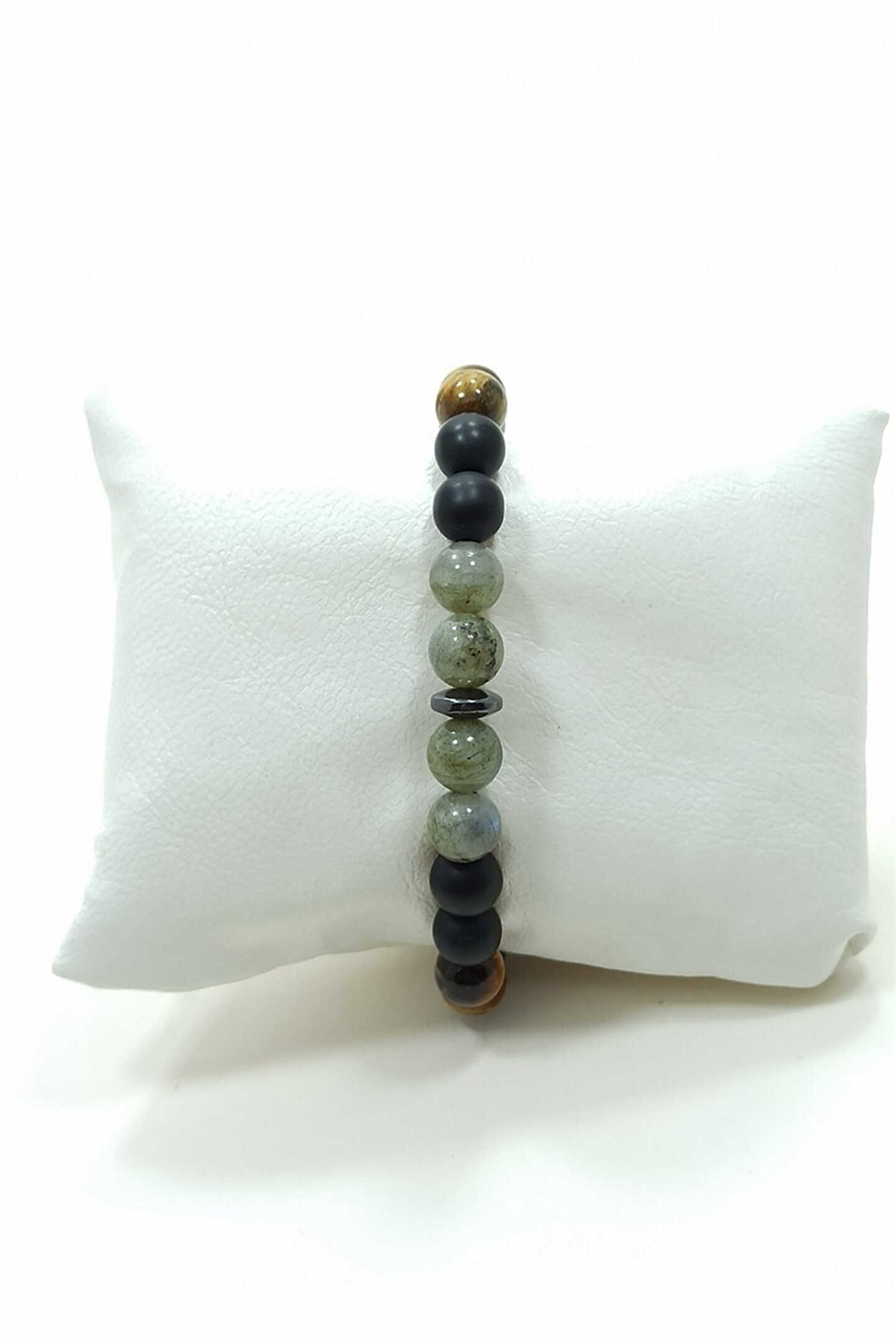 Karizma Bilekliği: Labradorit Oniks Hematit Kaplangözü Doğal Taş Bileklik: LABRADORİT: Daha iyi odaklanmayı ve konsantre olmayı sağlayacak olan iç sükuneti sağlar. ; Bu özelliği dolayısıyla, örneğin sınavlar gibi yoğun dikkat gerektiren durumlarda kullanılması faydalıdır. ; Ruhsal bakımdan gelişme amacıyla kullanılır. ; Kişinin geçmişini ve güncel yaşantısını çözümlemesine yardım eder. ; Gözler için faydalıdır. ; Kan basıncını dengeler.Özellikle yüksek tansiyonda etkilidir. ; Omurga hastalıklarına,romatizma gibi eklem hastalıklarına ve gut hastalıklarının tedavisinde destek amaçlı kullanılır. ; ONİKS TAŞI: Şans taşıdır. ; Rahatlatıcı özelliği vardır. ; Konsantrasyonu sağlar. ; Zihin bulanıklığını giderir. ; Depresyondan kurtulmaya yardımcıdır. ; Strese iyi gelir ve kişiyi sakinleştirir. ; Kemik yapısını ve ilik sistemini güçlendirir. ; Obezite tedavisinde faydalıdır. ; Kişinin kendisine güvenini arttırır ve cesaret verir. ; Ayak rahatsızlıklarına iyi gelir. ; Kadın-erkek arasındaki ilişkileri dengeler. ; HEMATİT TAŞI: Kişinin kendisine güven duymasına ve kontrol etmesine yardımcıdır. ; Birey ve toplum arasındaki ilişkilerde denge görevi görür. ; Olumsuz enerjiyi gidermeye yardımcıdır. ; İlişkiler üzerinde olumlu etkisi vardır Tüm çakraları dengeler. ; Uykusuzluğa iyi gelir. ; Kan dolaşım sistemini düzenler, kalbi sağlıklı tutar, kan basıncını dengeler. ; Mafsal romatizması ağrılarını hafifletir. ; Harap olmuş, hasar görmüş dokuların yeniden oluşmasına yardım eder. ; İskelet sistemi hastalıklarına iyi gelir. ; KAPLANGÖZÜ TAŞI: Cesaret ve güç taşı olarak bilinir. ; Kişinin karar vermesine yardımcı olur. ; Algı gücünü artırır. ; İnatçılığı azaltır ve duygusal bakımdan dengeleyici bir taştır.;