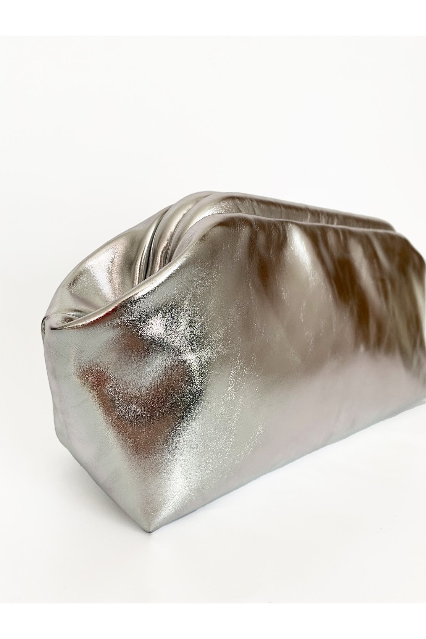 Heybes Kadın Gümüş Lame Parlak Dokulu Deri Clutch El Çantası; Zarif tasarımıyla dikkat çeken gümüş lame parlak dokulu deri clutch el çantası, şıklığınızı tamamlayacak bir aksesuardır.; Düz deseniyle sade ve modern bir görünüm sunan bu clutch çanta, her türlü kıyafetle kolayca uyum sağlar.; Şık ve gece ortamları için ideal olan bu clutch çanta, özel davetlerde ve etkinliklerde göz alıcı bir aksesuar olarak öne çıkar.; Kilit kapama sistemi pratik kullanma imkânı sunar.; Heybes tarafından özel el işçiliği ile üretilmiştir.; •Dış Malzeme: Vegan Deri •İç Malzeme: Vegan Deri; İçi astarlıdır ve 1 adet iç cebi bulunmaktadır.; 32x15x10 cm (Genişlik x Yükseklik x Derinlik) ölçülerindedir.