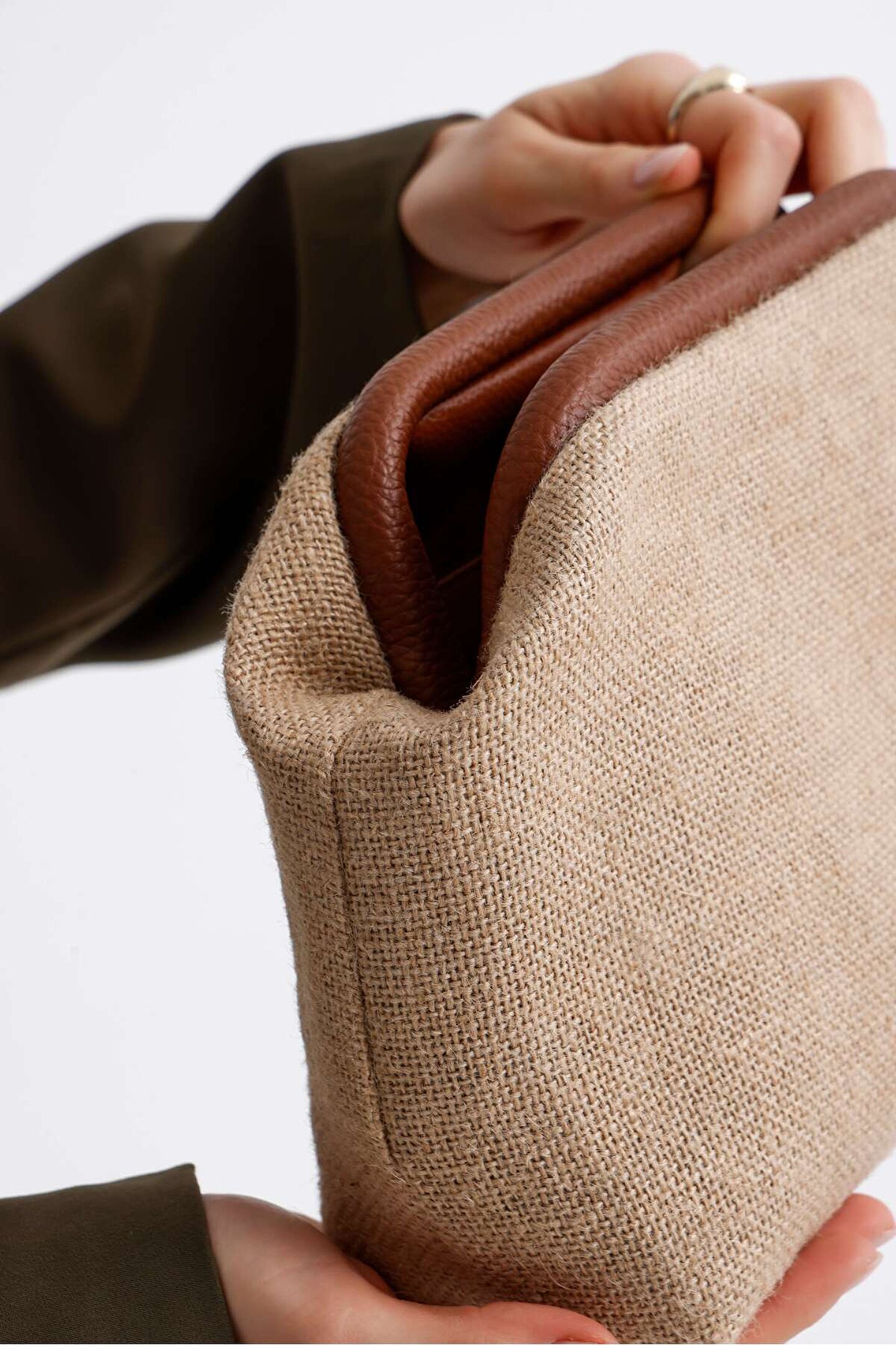 Heybes Kadın Kahve Biyeli Jüt Hasır Clutch El Çantası; Doğal jüt hasır materyali ile üretilmiş, dayanıklı ve şık bir tasarıma sahiptir.; Hasır yapısı sayesinde hafif ve taşıması kolay, günlük kullanım için idealdir.; Göz alıcı desenleriyle dikkat çeken, her türlü kıyafetle uyum sağlayan zarif bir aksesuardır.; İç kısmında bulunan fermuarlı bölme ile küçük eşyalarınızı düzenli bir şekilde saklamanızı sağlar.; Hasır malzemesinin doğal dokusuyla benzersiz bir dokunuş sunar ve uzun süreli kullanım için uygundur.; Kilit kapama sistemi pratik kullanma imkânı sunar.; Heybes tarafından özel el işçiliği ile üretilmiştir.; •Dış Malzeme: Jüt •İç Malzeme: Vegan Deri; İçi astarlıdır ve 1 adet iç cebi bulunmaktadır.; 28x19x10 cm (Genişlik x Yükseklik x Derinlik) ölçülerindedir.