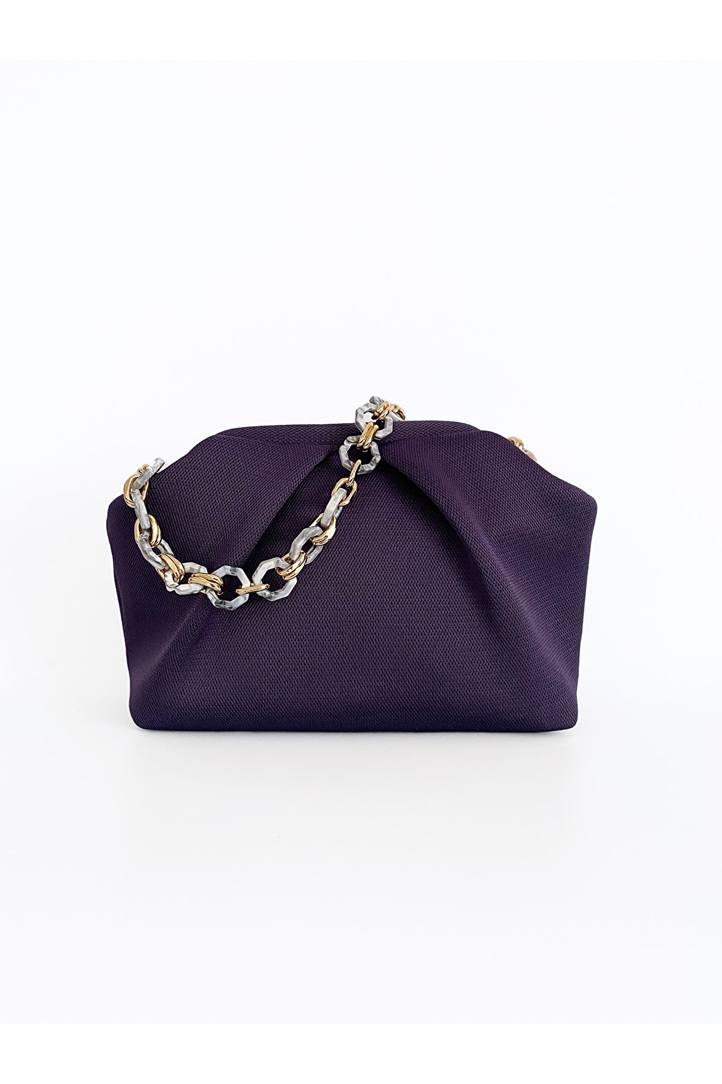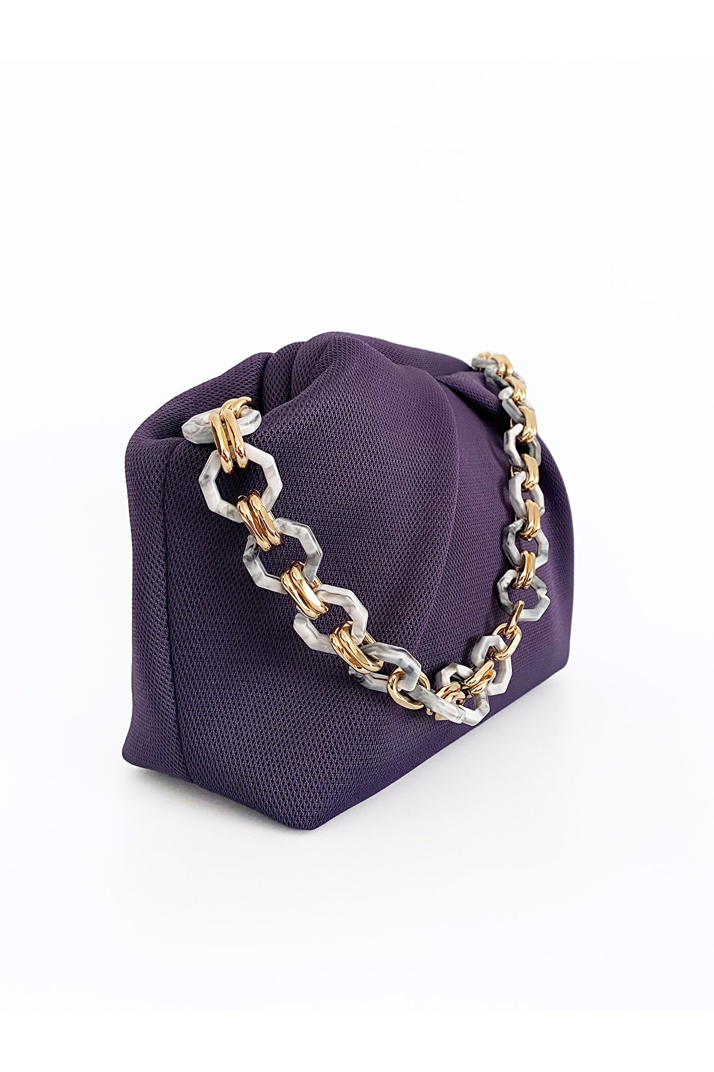 Sade ve şık tasarımıyla her kıyafetle uyum sağlayan düz desenli mor zincirli omuz çantası; Günlük kullanım için ideal, rahat ve fonksiyonel bir aksesuar; Her yaş grubuna hitap eden geniş kullanıcı yelpazesi ile herkesin tercihi olabilir; Dayanıklı dokuma kumaş yapısı sayesinde uzun süreli kullanım imkanı sunar;