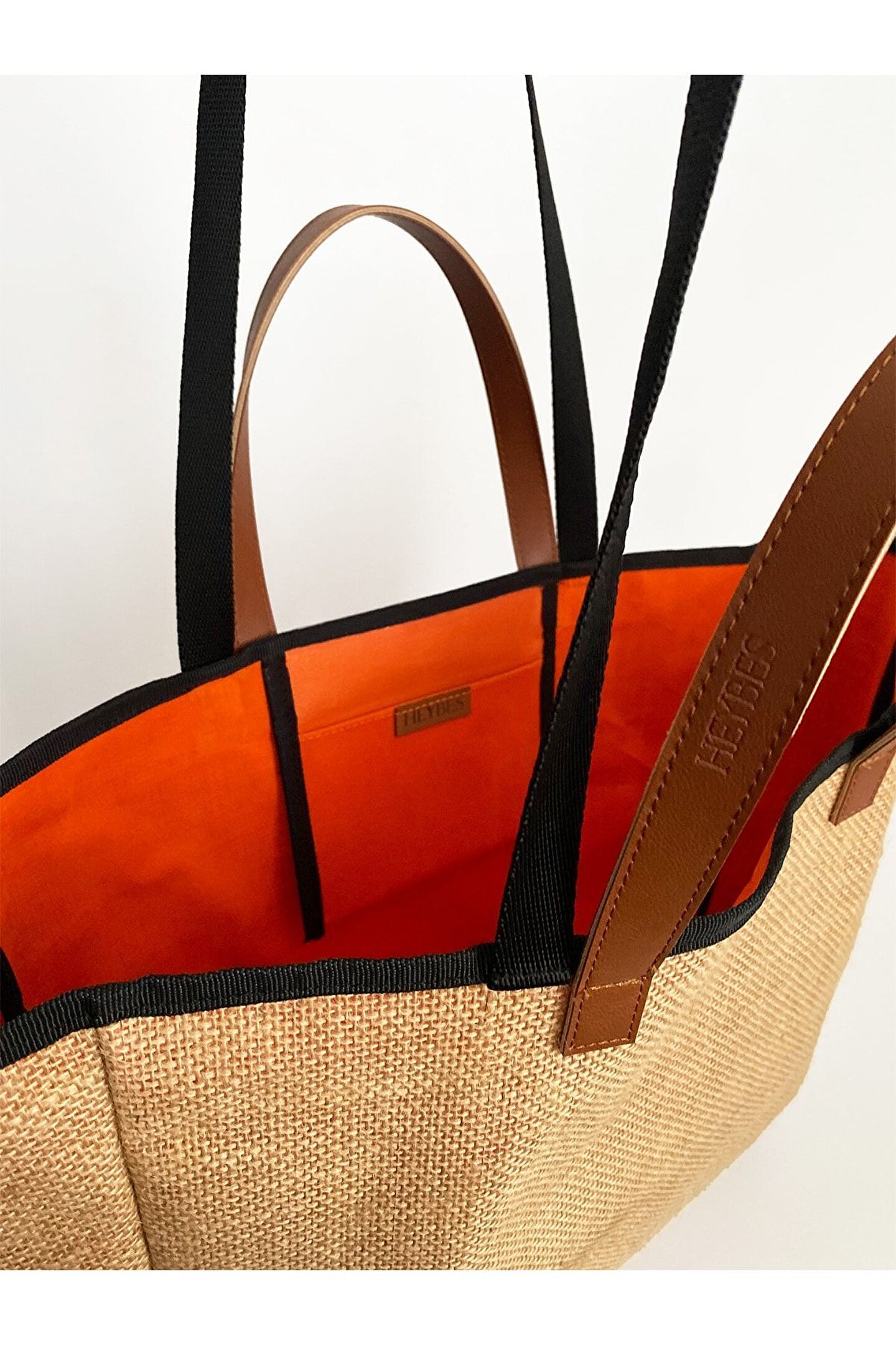 HEYBE‘S Kadın Turuncu Su Geçirmez Astarlı Jüt Hasır Büyük Boy Plaj Ve Alışveriş Shopper Tote Omuz Çantası