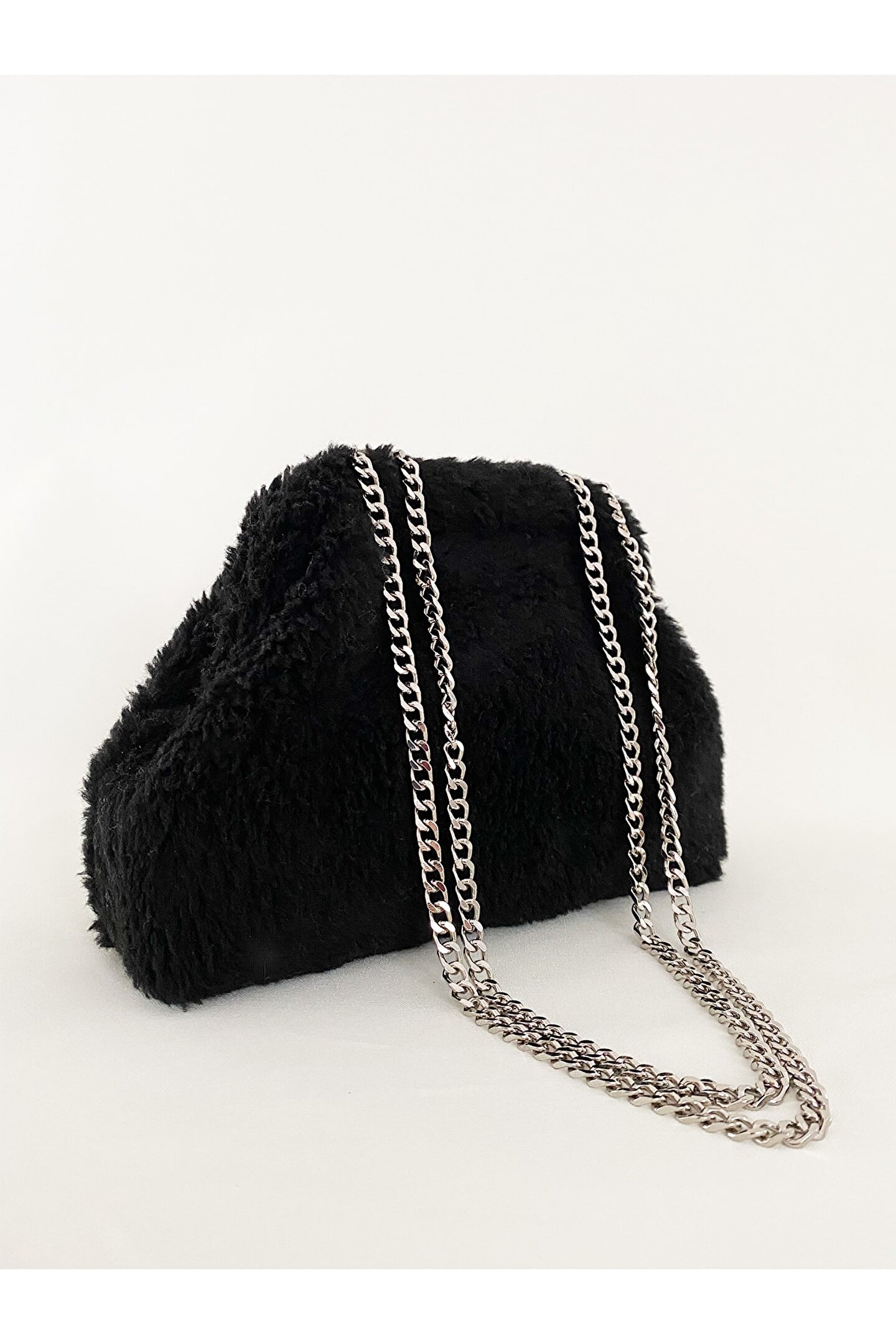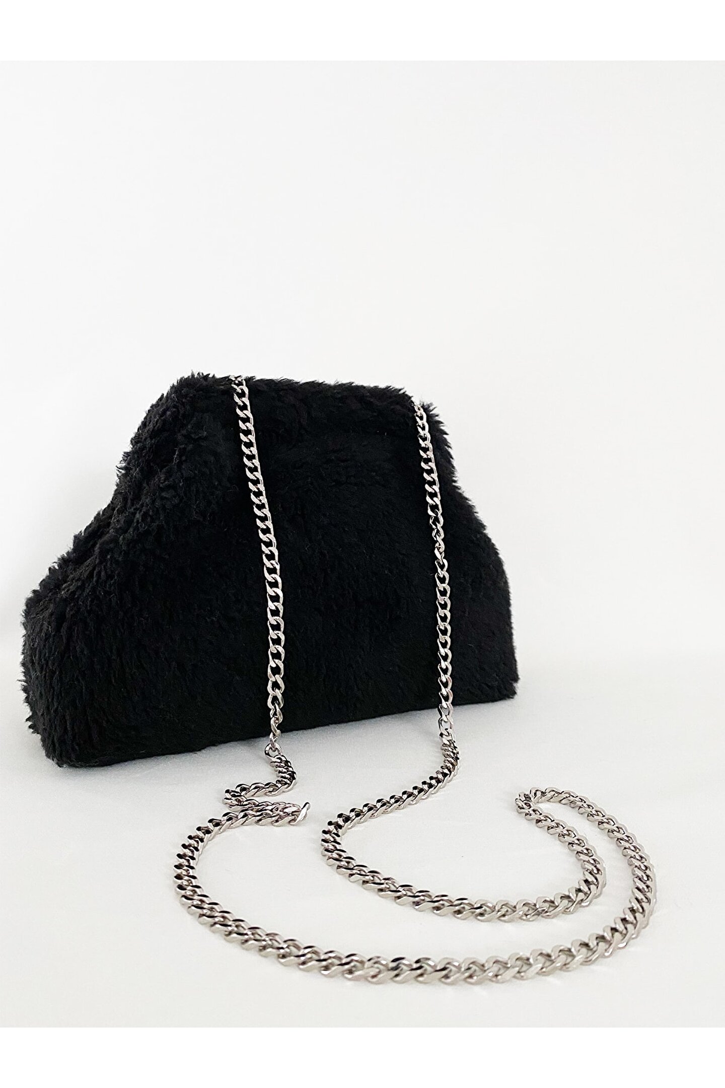 HEYBE‘S Kadın Zincirli Siyah Teddy Peluş Çanta