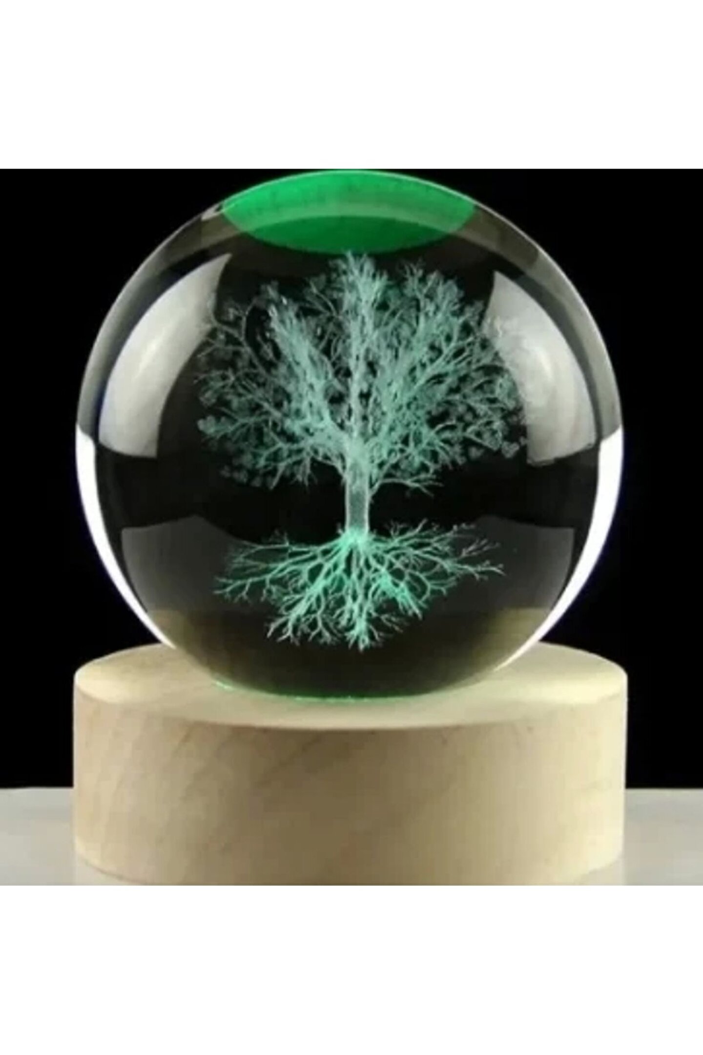 Dekoratif AĞAÇ Tasarımlı Ahşap altlıklı Işıklı Cam Küre Büyük Boy 8cm