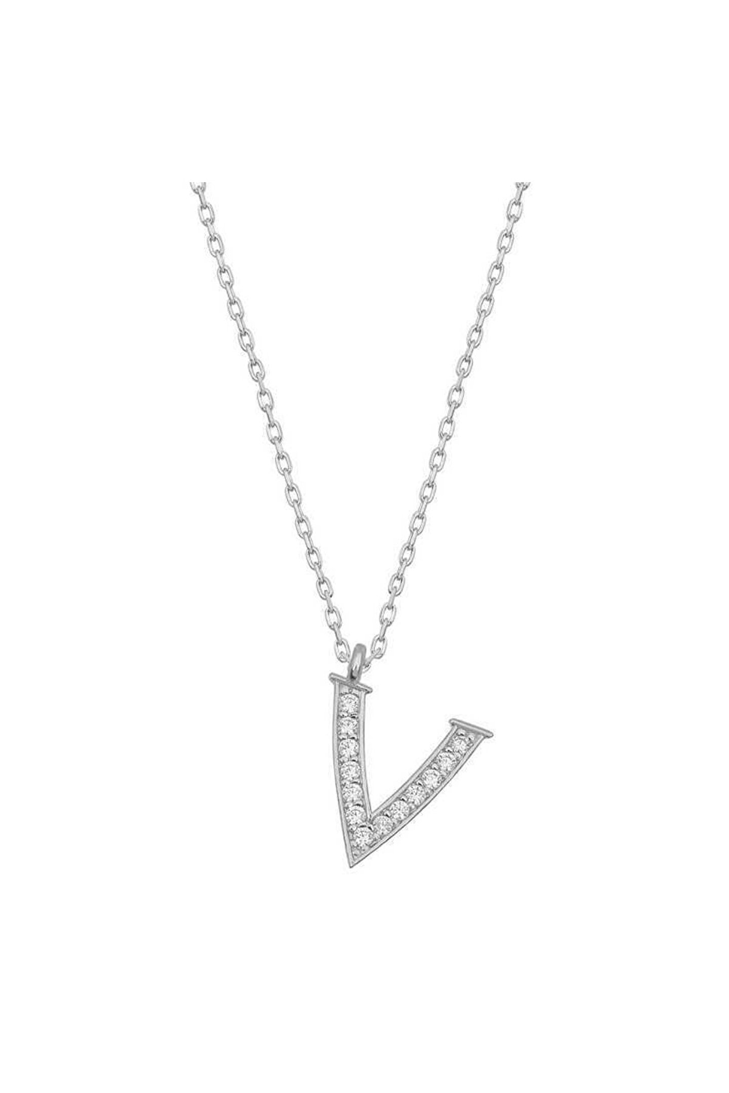 925 Ayar Gümüş Rodyum Kaplama V Harfi Kadın Gümüş Kolye