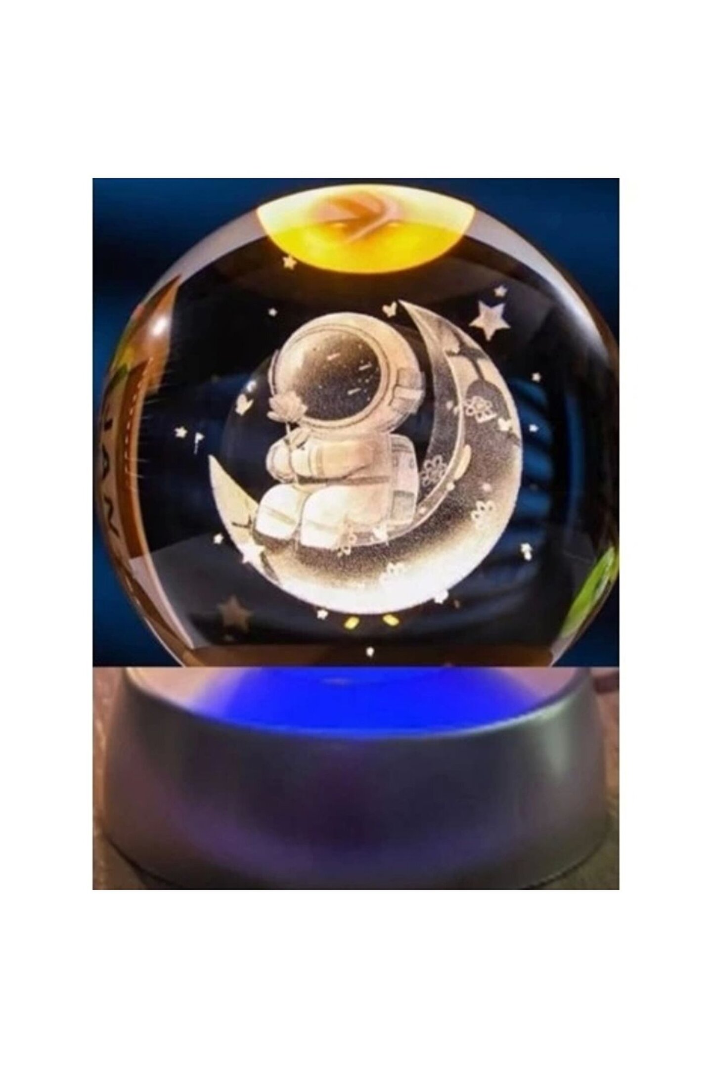 Dekoratif Ay Üstünde Astronot Tasarımlı Plastik Altlıklı Cam Küre