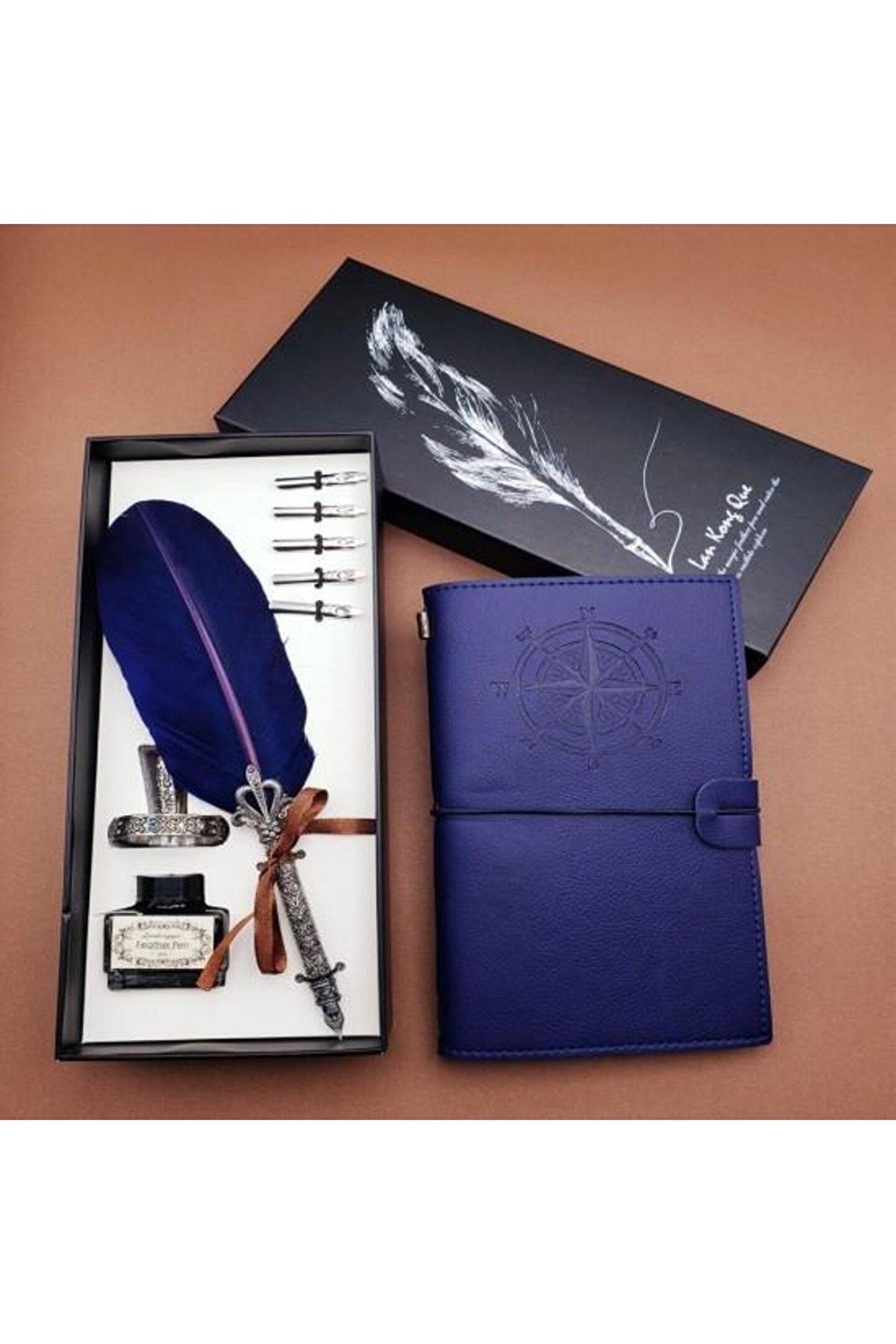 Deri Defter Tüylü Kalem Set Dekoratif Hediyelik