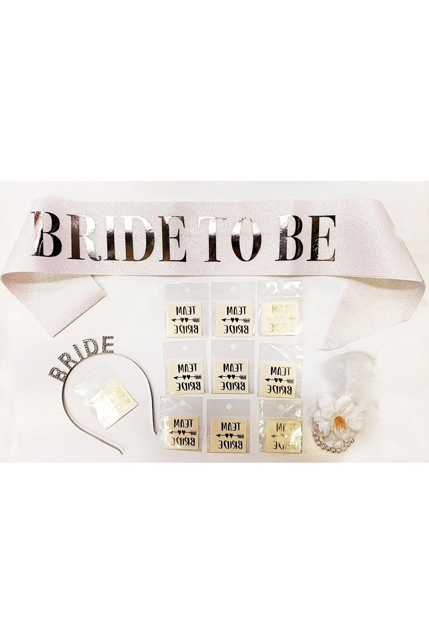 Himarry Gümüş Renk Bride Partisi Taç Kuşak Dövme Bileklik Seti Full 13 Parça