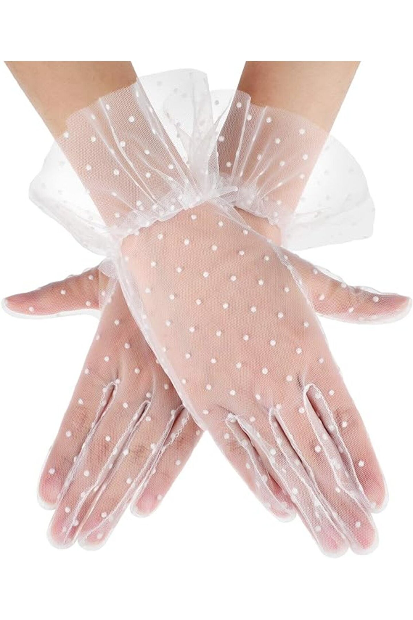 himarry Kısa Boy Güpürlü Beyaz Puantiyeli Tül Eldiven Beyaz Renk