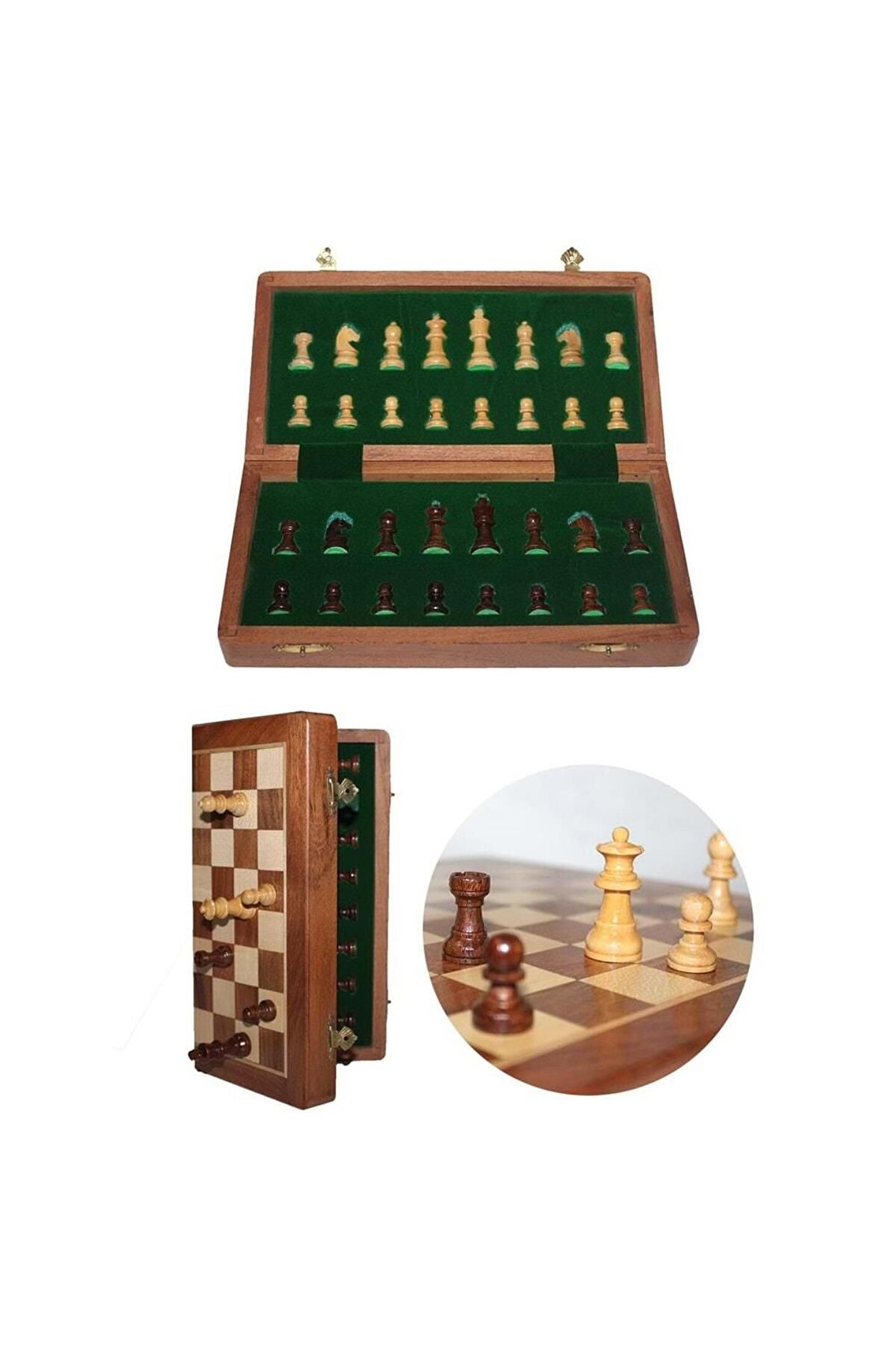 Himarry Mıknatıs Taşlı Ahşap Katlanabilir Kutulu Satranç Oyunu 25 Cm