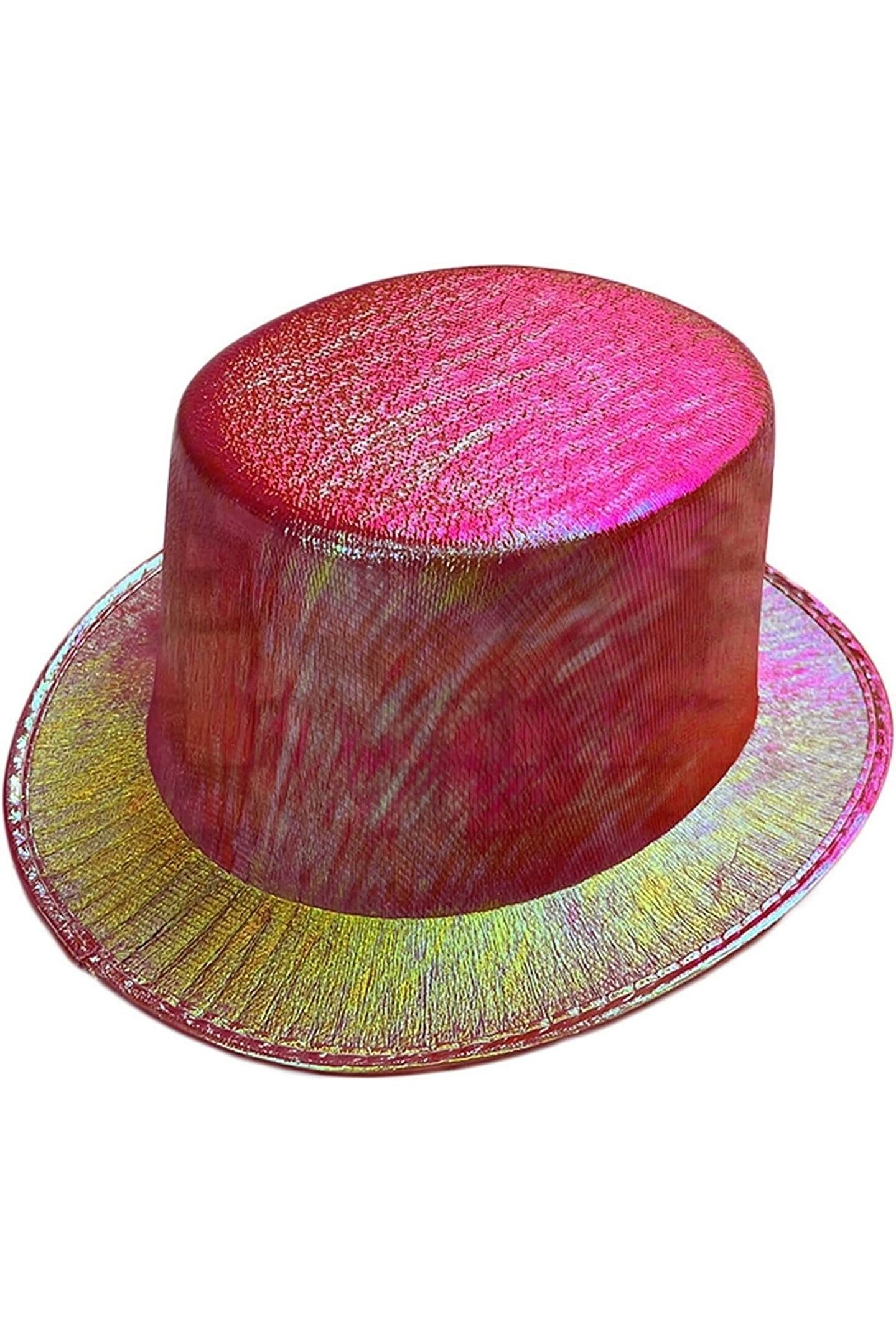 Kırmızı Renk Işıltılı Hologram Kumaş Kaplama Fötr Silindir Şapka Yetişkin Boy