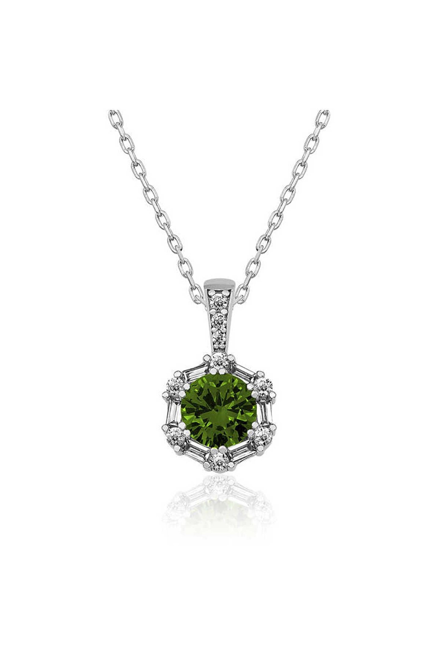Samur Parti Parti Aksesuar & Kostüm 925 Ayar Gümüş Ceviz Yeşili Baget Taşlı Kadın Gümüş Kolye