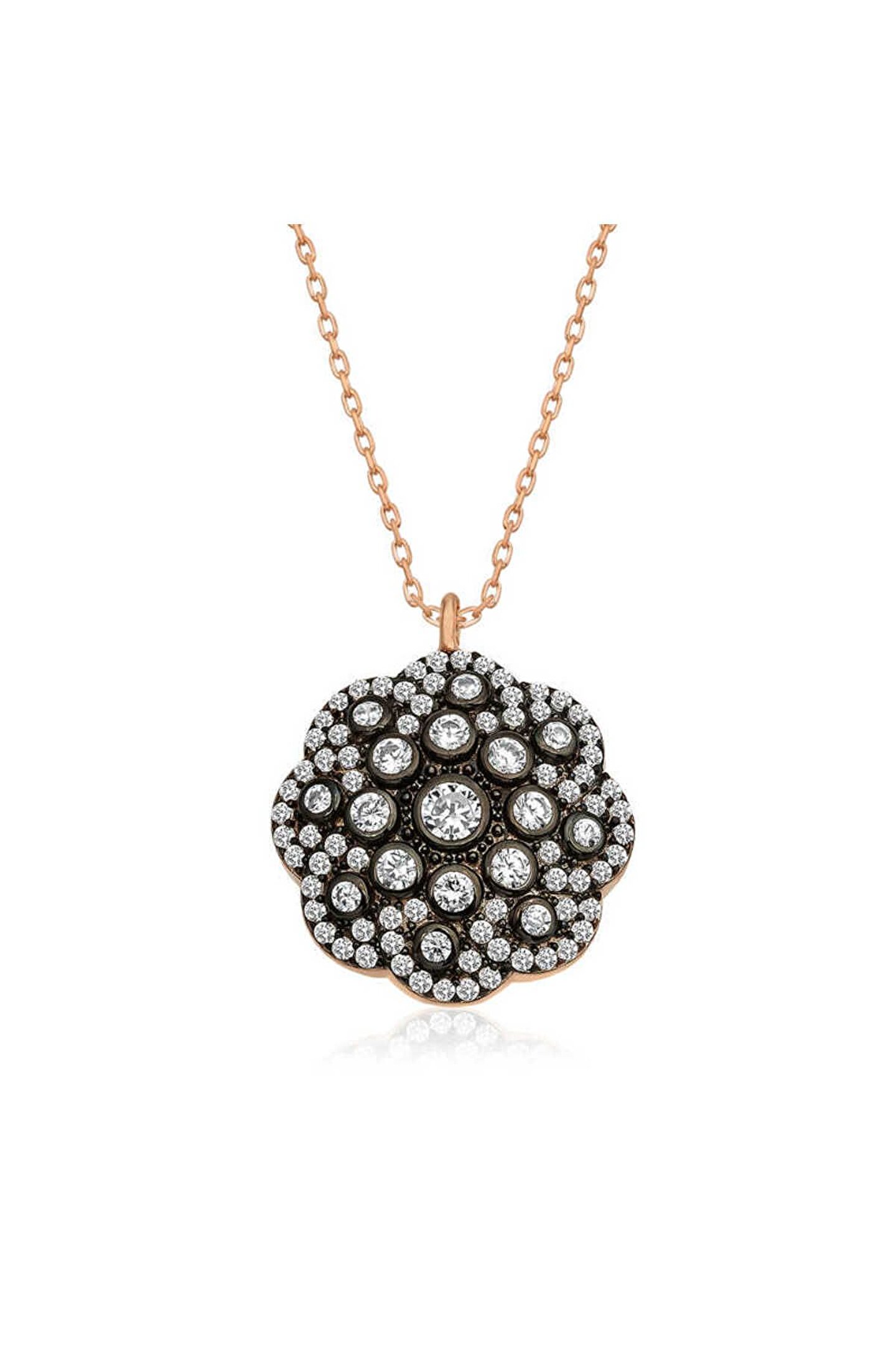 Samur Parti Parti Aksesuar & Kostüm 925 Ayar Gümüş Çiçek Desenli Elmas Montür Kolye