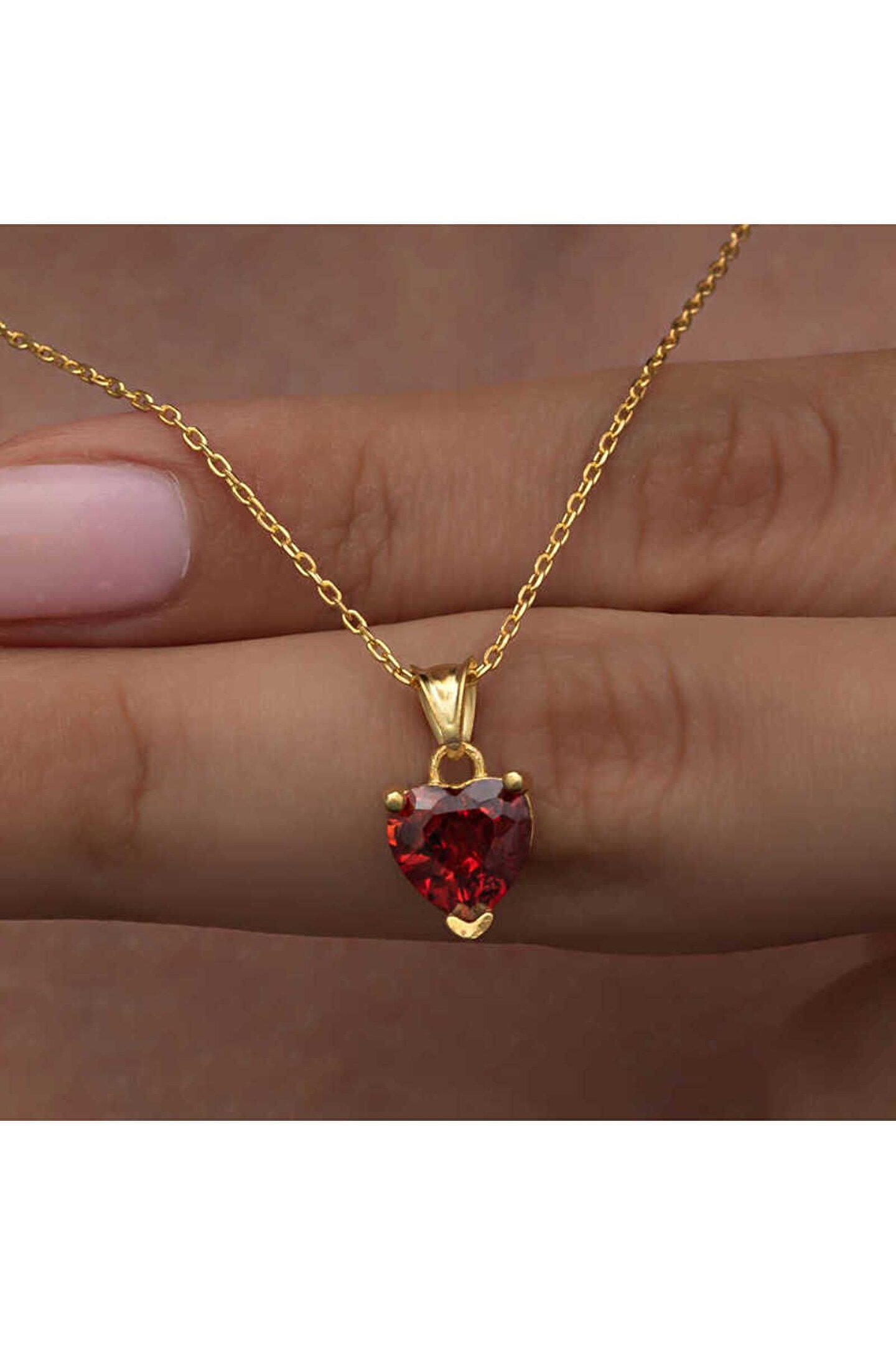 Samur Parti Parti Aksesuar & Kostüm 925 Ayar Gümüş Gold Kırmızı Taşlı Kalpli Kadın Kolye