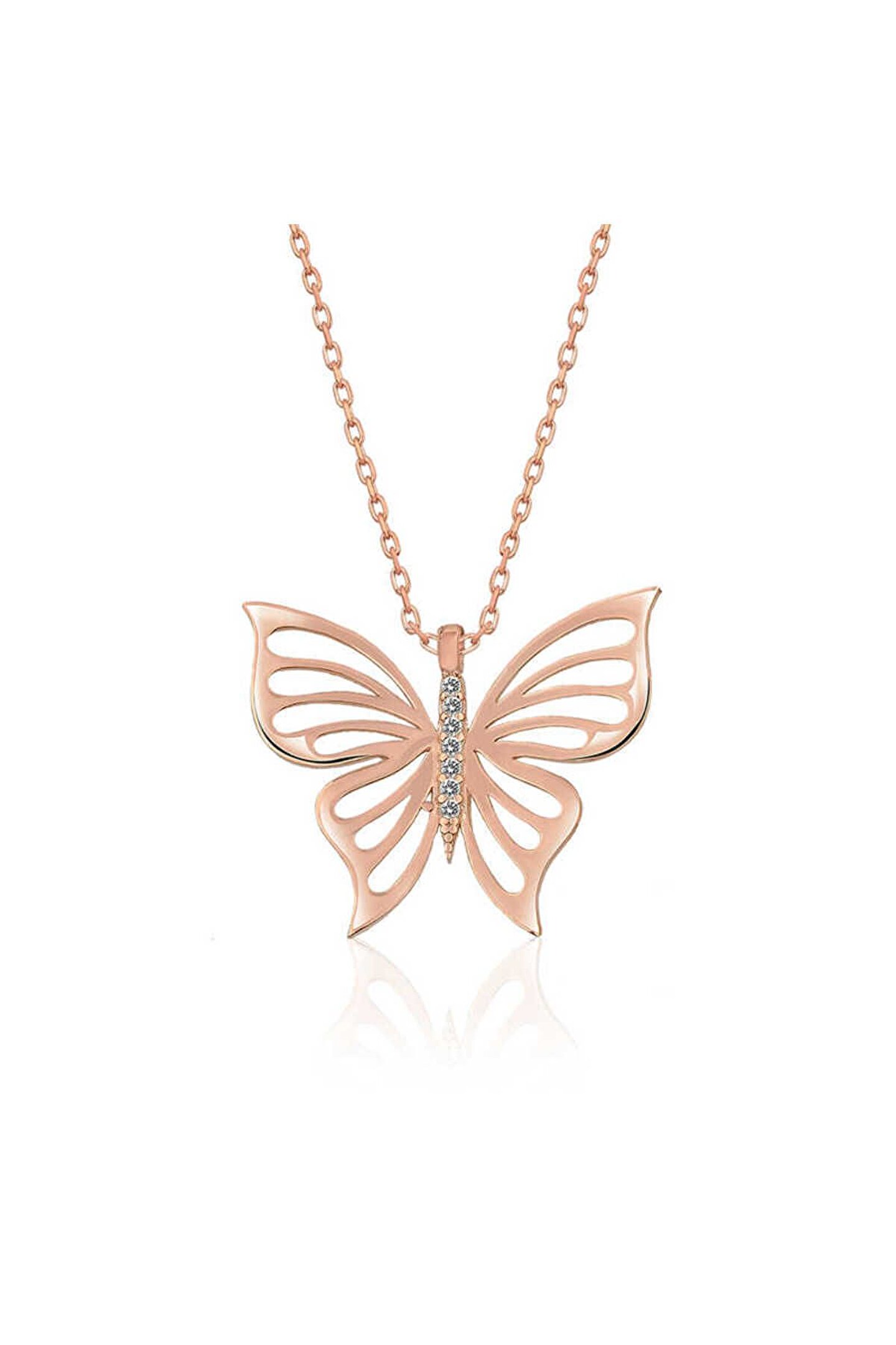 Samur Parti Parti Aksesuar & Kostüm 925 Ayar Gümüş Rose Bahar Kelebeği Kadın Gümüş Kolye