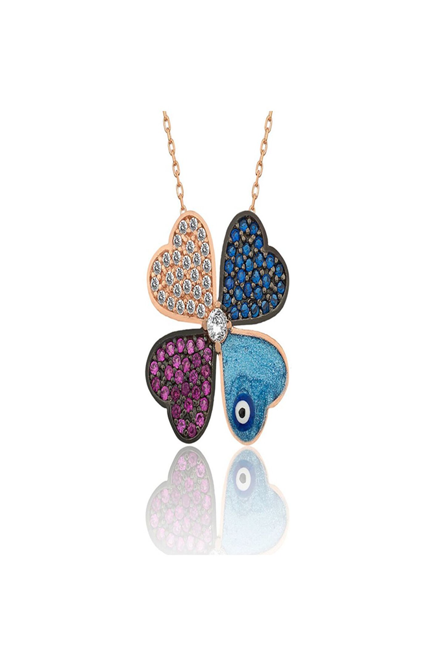 Samur Parti Parti Aksesuar & Kostüm 925 Ayar Gümüş Rose Dört Yapraklı Yonca Kadın Kolye