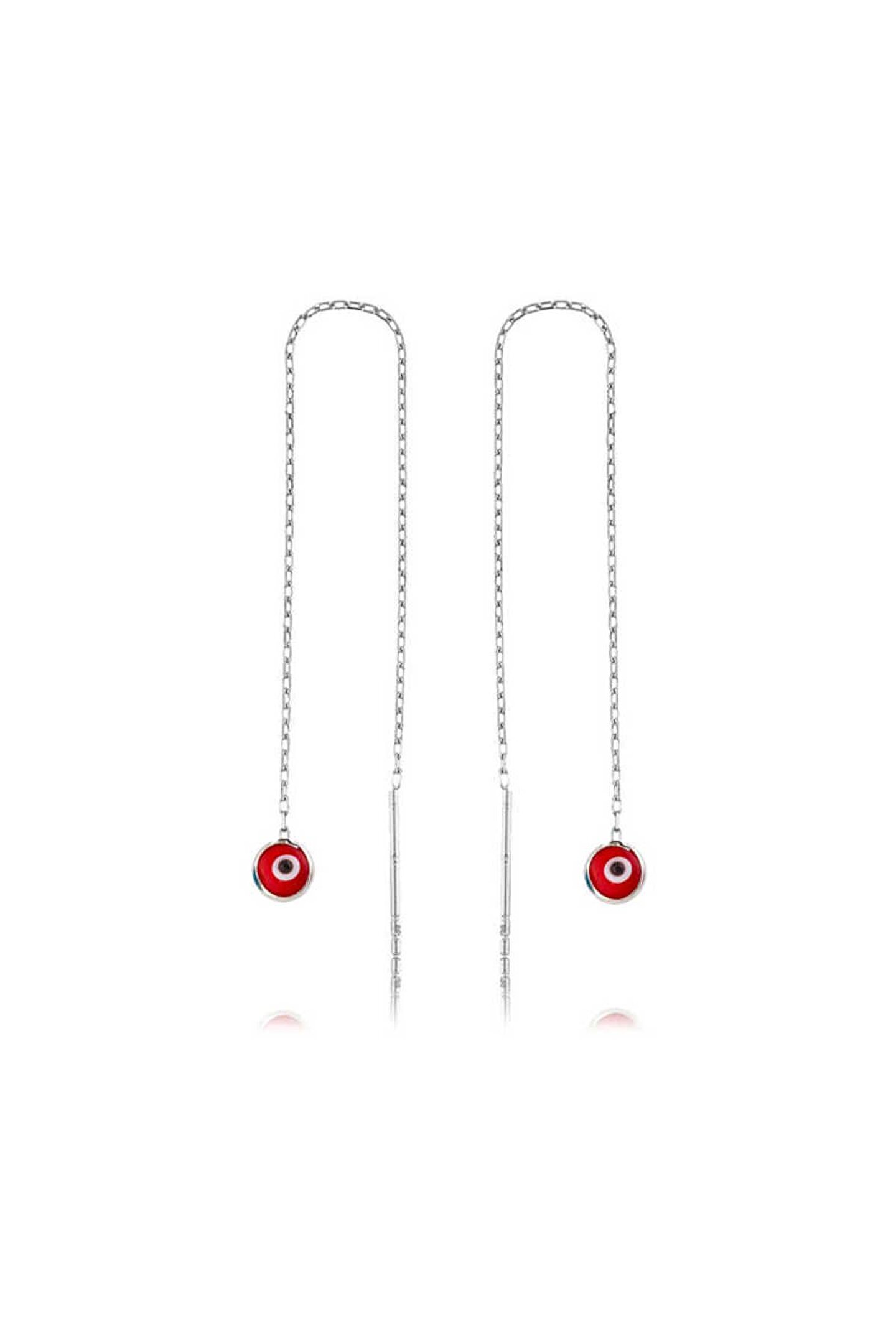 Samur Parti Parti Aksesuar & Kostüm 925 Ayar Gümüş Zincirli Kırmızı Nazar Küpe