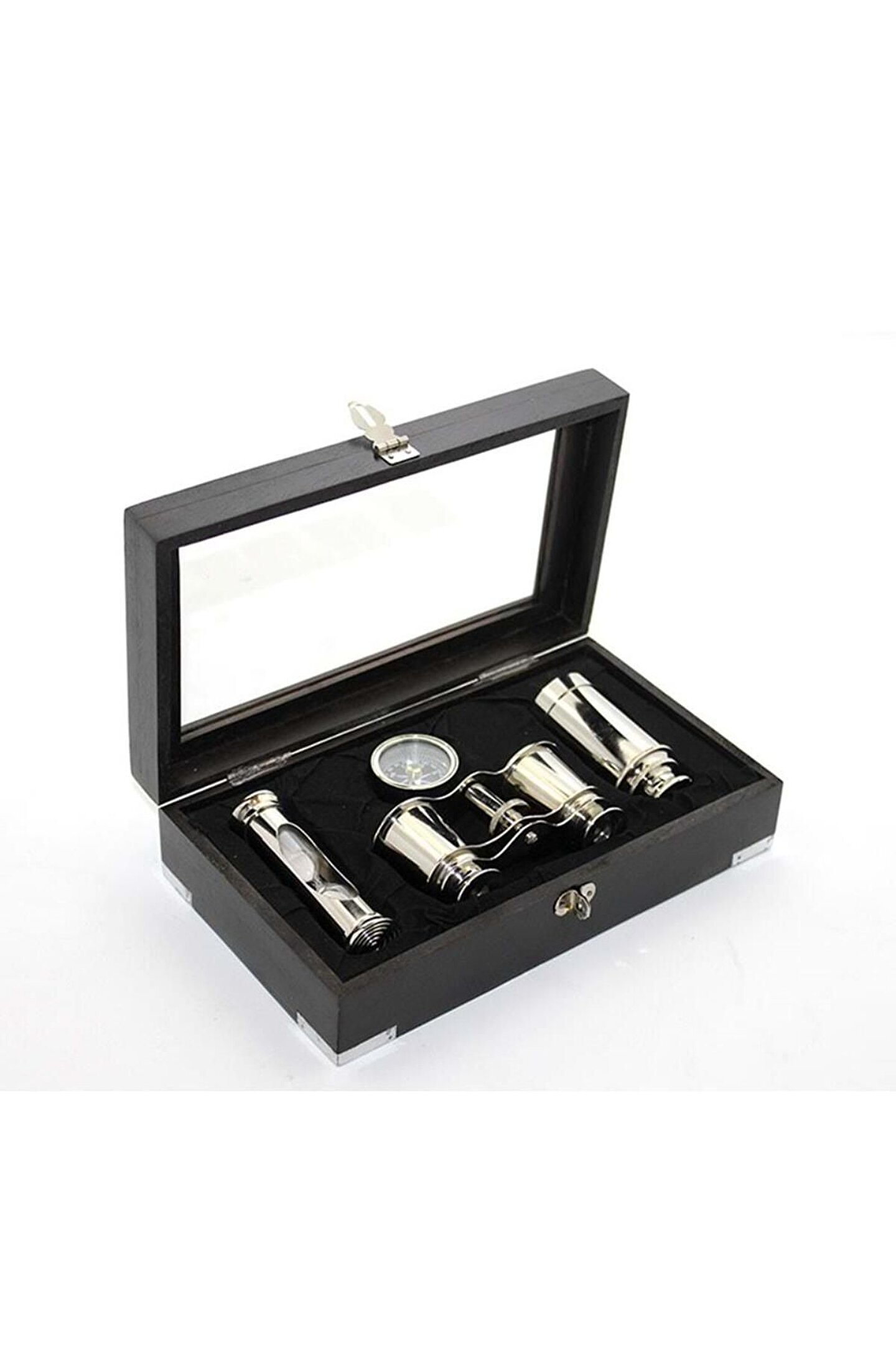 Samur Parti Parti Aksesuar & Kostüm Ahşap Kutulu Pirinç Dürbün Pusula Ve Kumsaati Seti