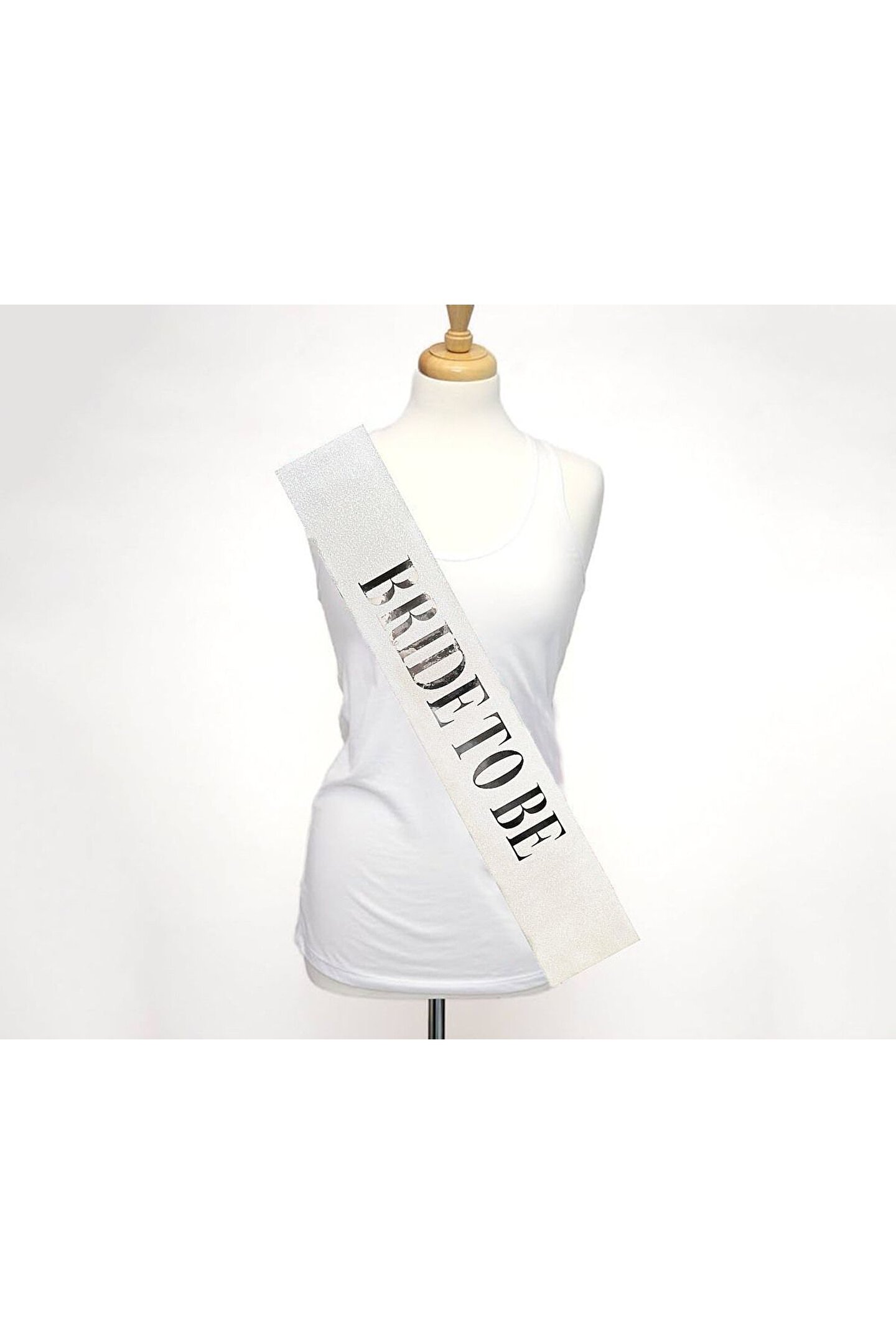 Samur Parti Parti Aksesuar & Kostüm Beyaz Üzeri Gümüş Büyük Bride To Be Yazılı Simli Işıltılı Kuşak