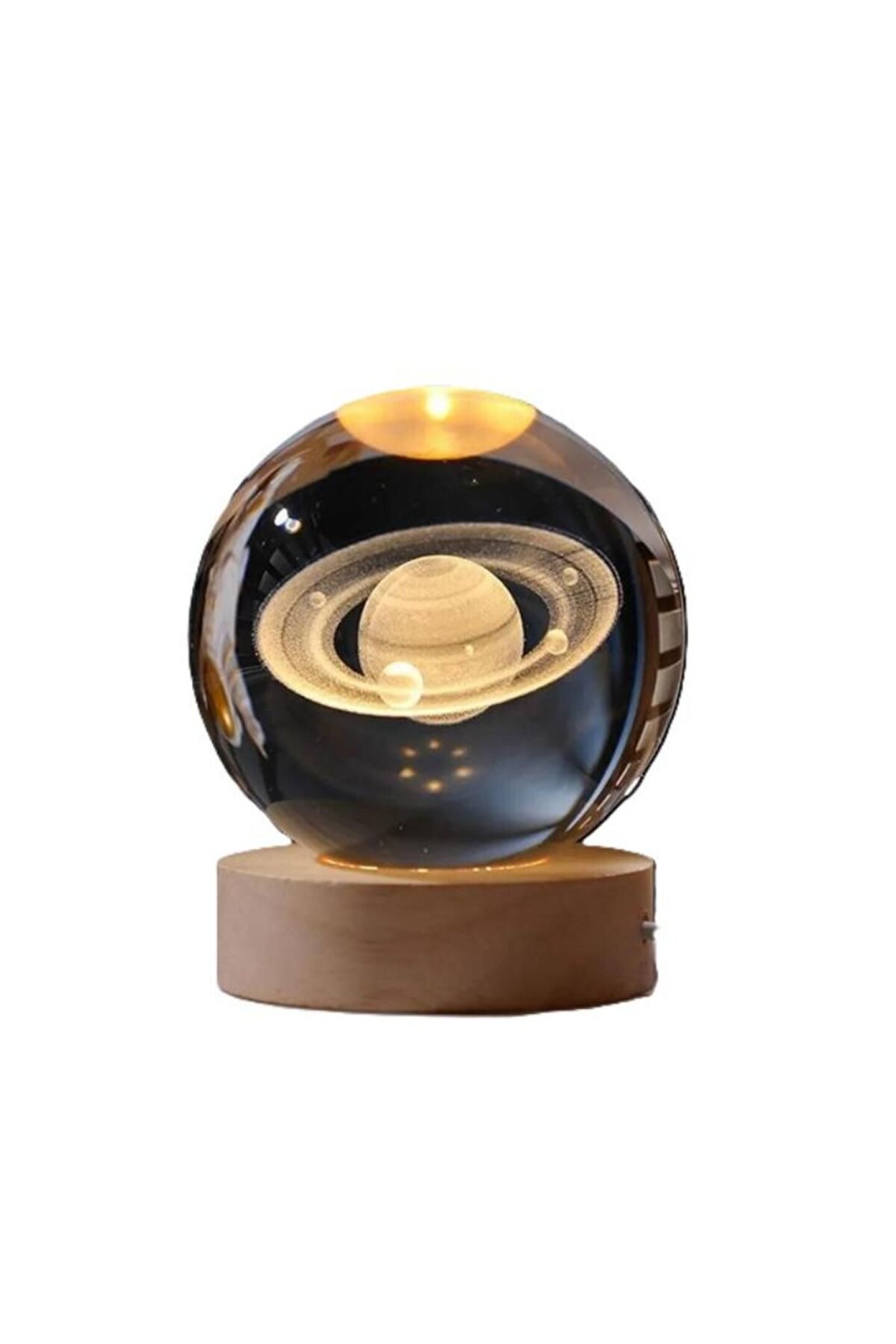 Samur Parti Parti Aksesuar & Kostüm Dekoratif Satürn Tasarımlı Ahşap Altlıklı Işıklı Cam Küre Cam:6c