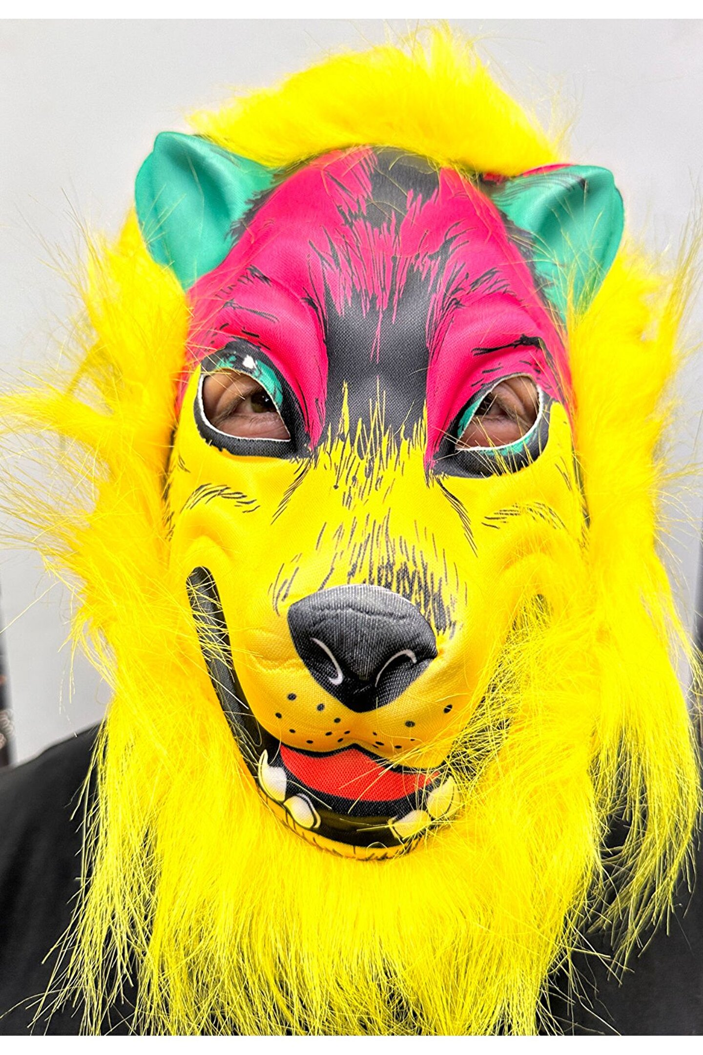 Samur Parti Parti Aksesuar & Kostüm Sarı Yeleli Saçlı Kurt Maskesi Köpek Maskesi Mega Peluş 10 No