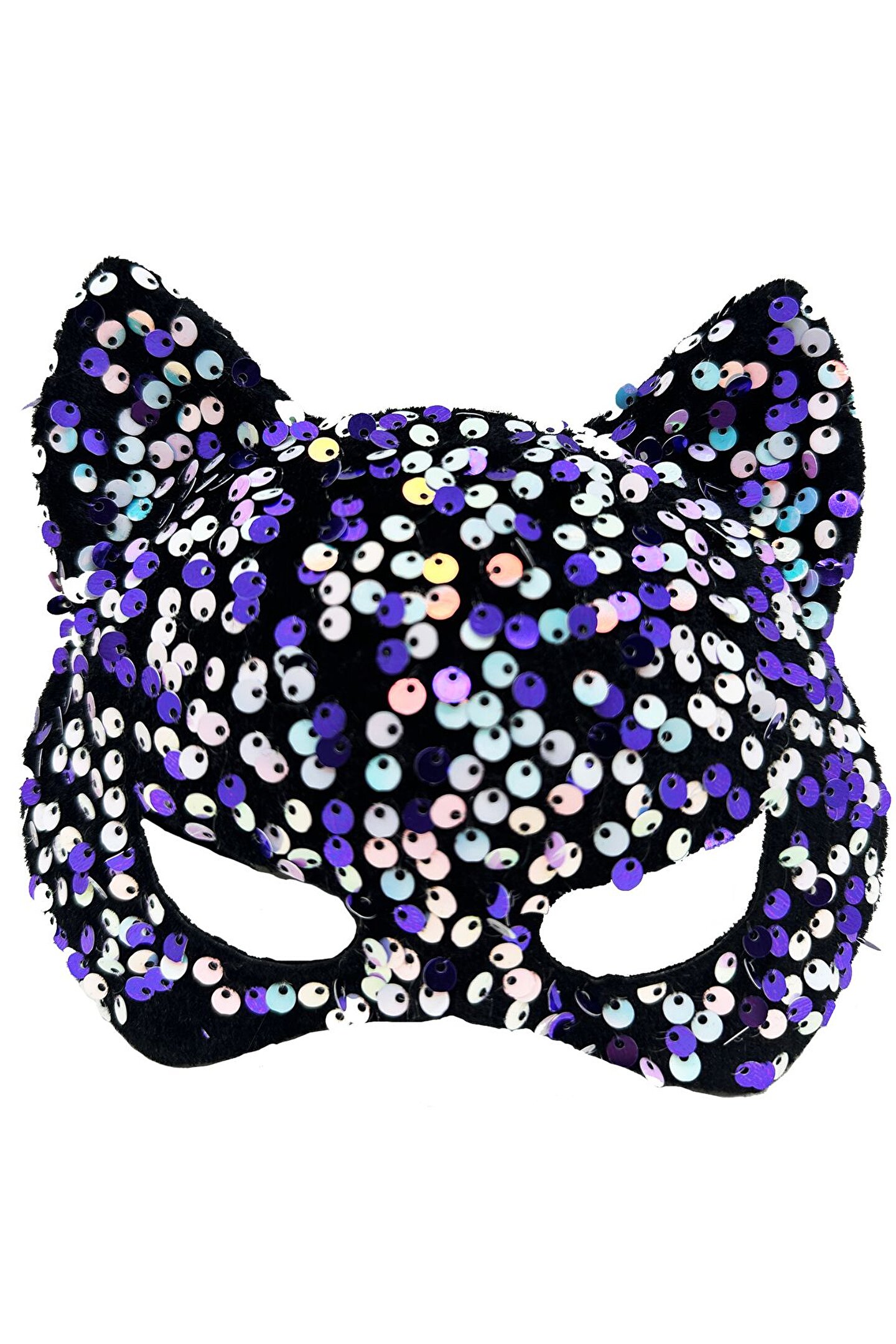 Samur Parti Parti Aksesuar & Kostüm Siyah Kadife Kumaş Üzerine Mor Beyaz Payetli Pullu Parti Maskesi