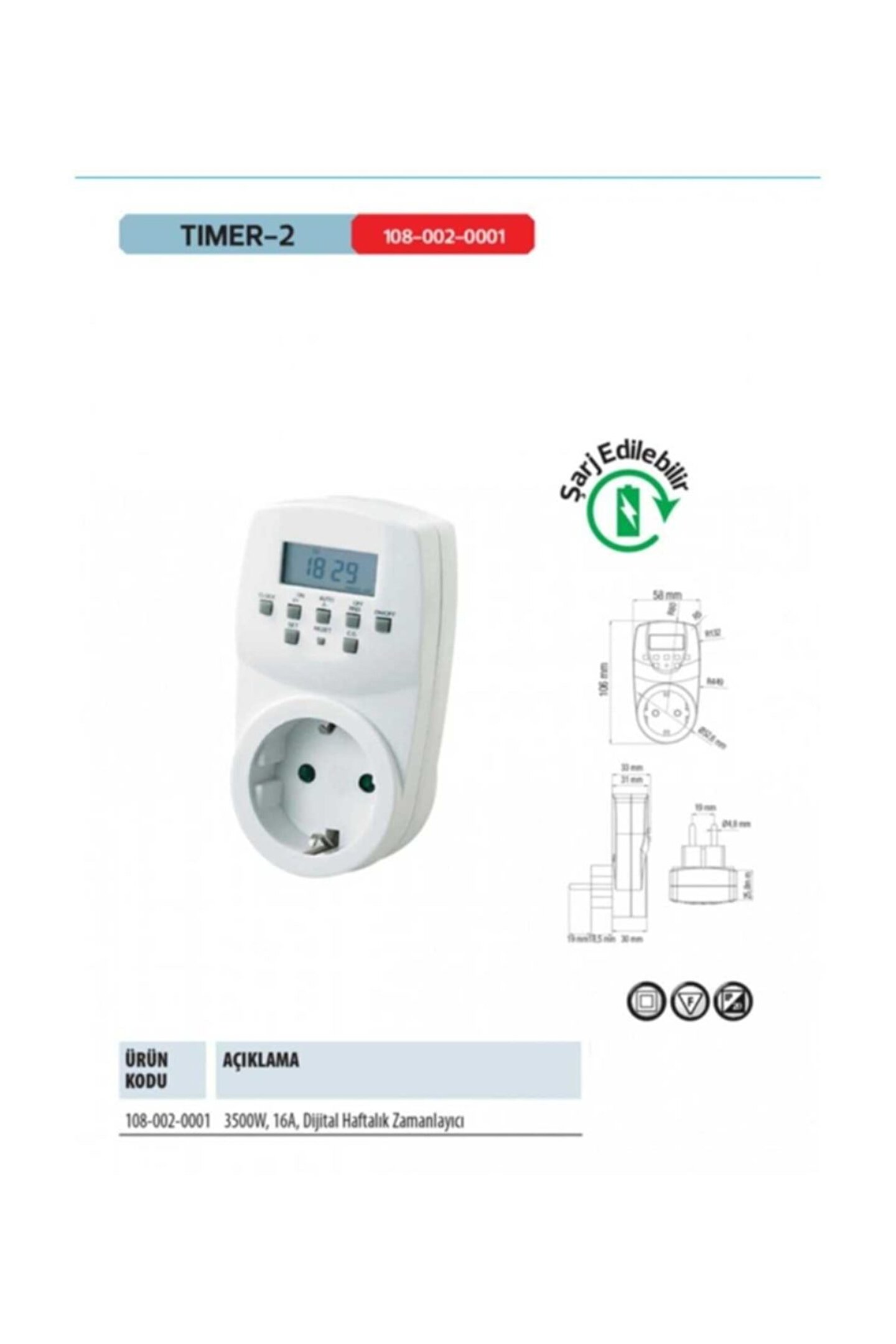 Dijital zaman saati timer 20 programlı Horoz timer; 2 dijital ayar zaman saati prizi rolesi haftalık 20 programlı açma; Kapama Horoz elektrik tımer; 2 108; 002; 0001 dijital zaman saati 20 adet açma kapama program kapasiteli yani 20 adet açma program saati ve 20 adet kapatma program saati kurulur 1 dakikalık hassasiyetle kurulum hafta içi; Hafta sonu; Tek gün seçme ayarı haftalık zaman saati içindeki şarjlı pil sayesinde günlerce hafıza silinmeden durur tam randımanlı çalışması için 24 saat aralıksız prizde şarj ettikten sonra kullanmanız tavsiye olunur elektrik tasarrufu ve yaşam kolaylığı sağlar max 3500 watt max 16a profesyonel sanayi tipi cihazlar için değildir amatör ev kullanım içindir denemek için lütfen cihaz satın almayınız ;